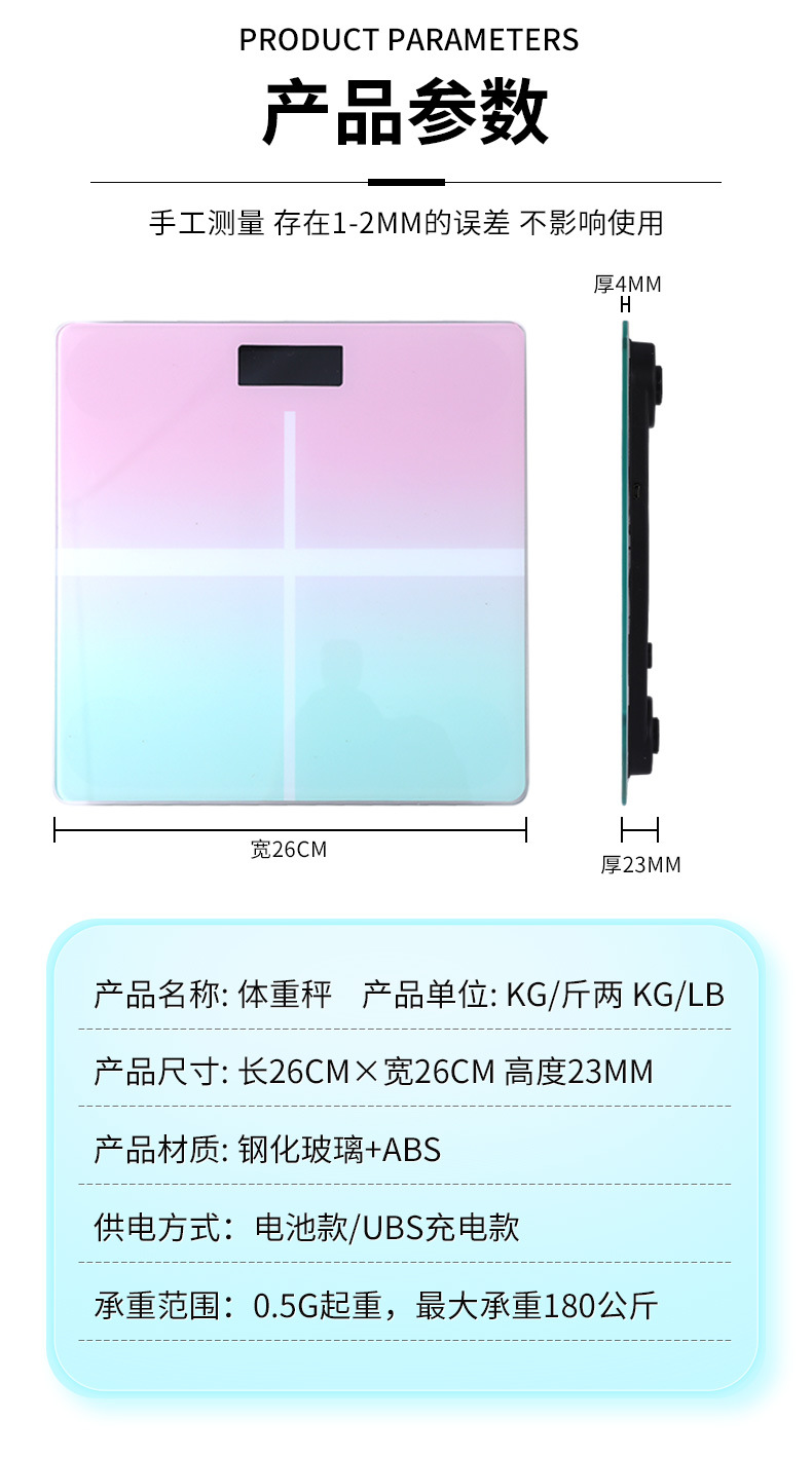 工場直販スクエアシンプル家庭用高精度耐久性正確な計量インテリジェント充電電子体重計