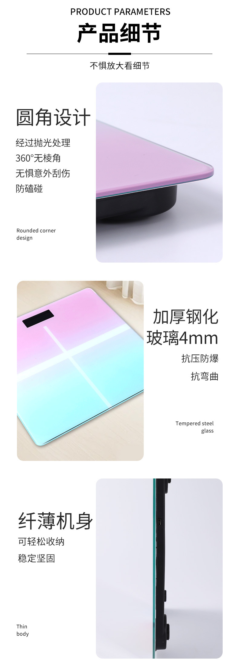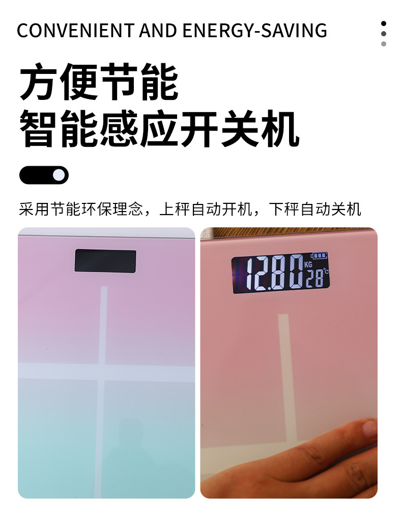 家庭用インテリジェント高精度正確な測定正方形ガラスシンプルなマルチカラーオプションのボディスケール電子スケール体重計