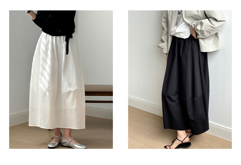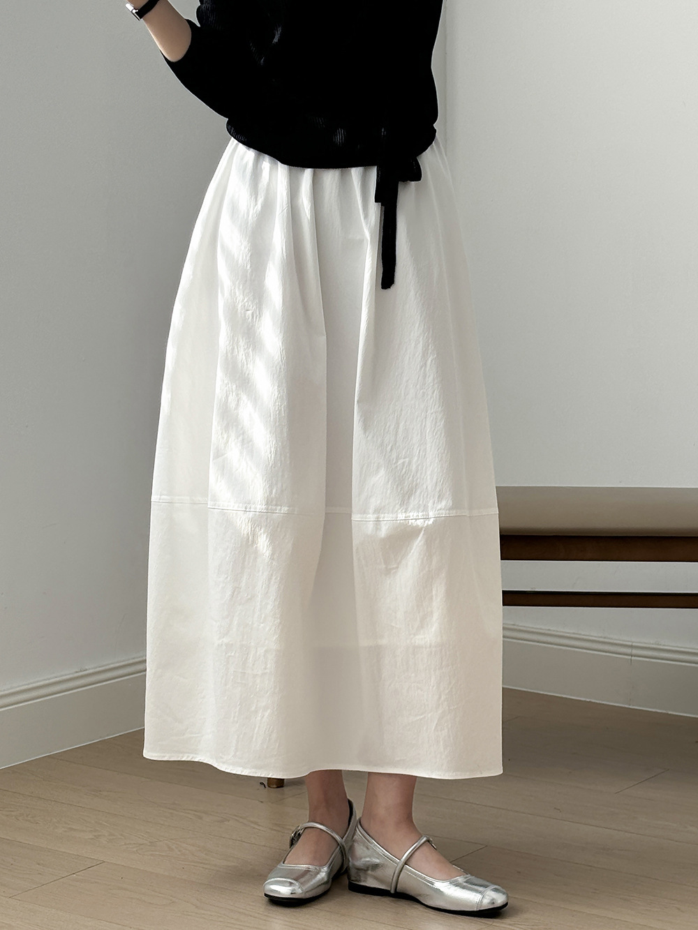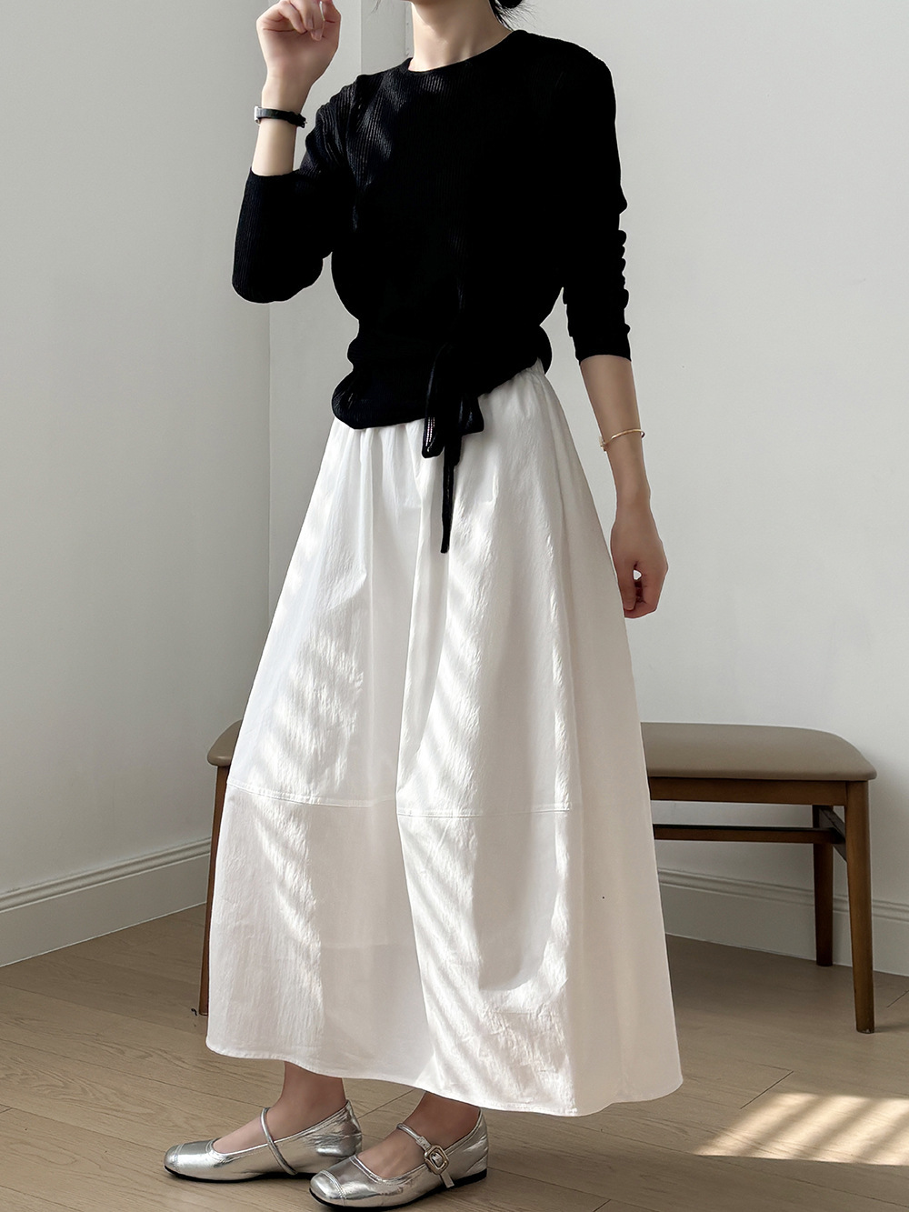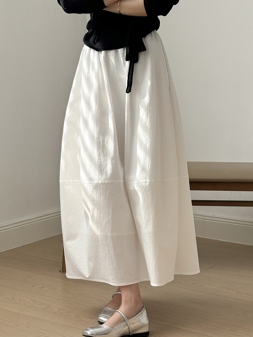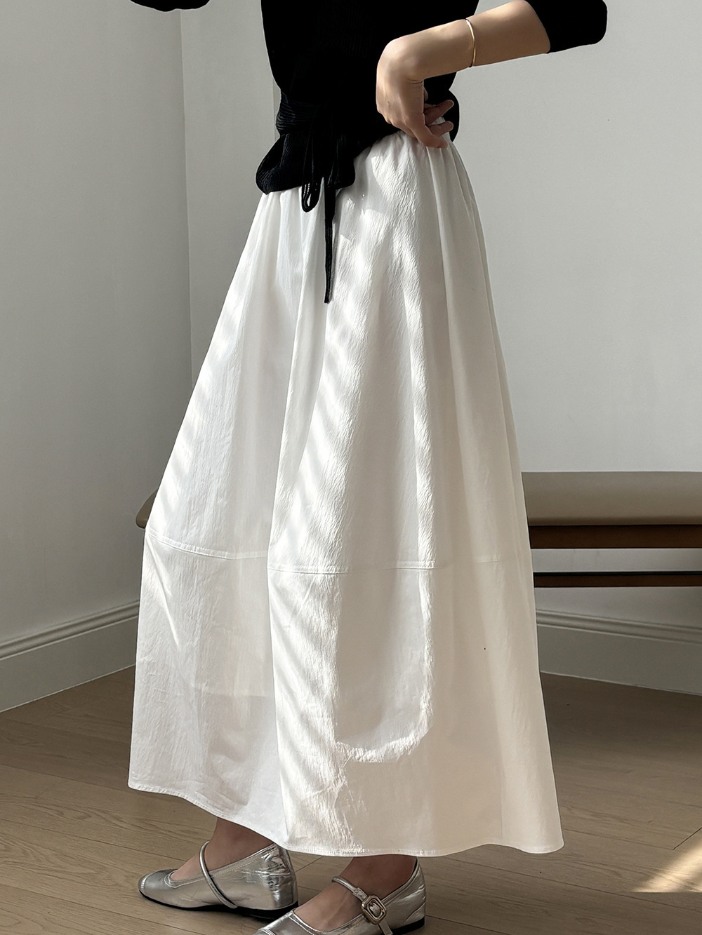 白いスカート レディース 2025年秋新作 ハイウエストAラインミディ丈スカート 細見え 小柄さん向け ふんわりケーキスカート