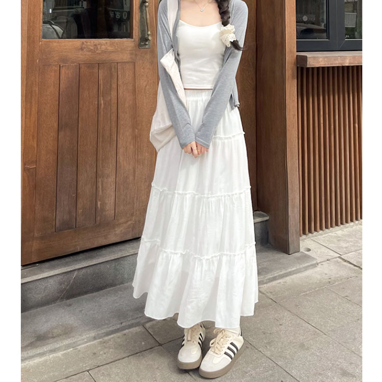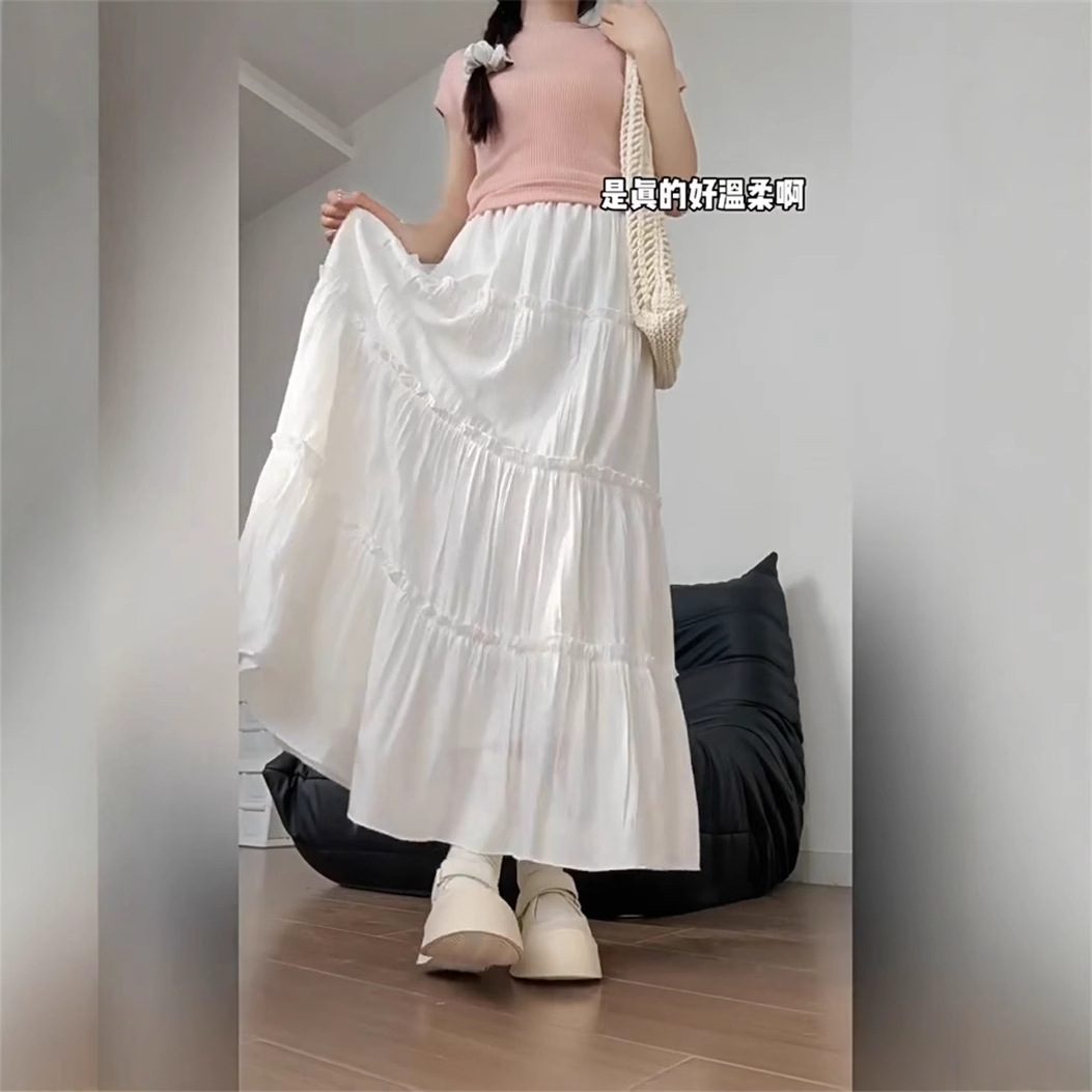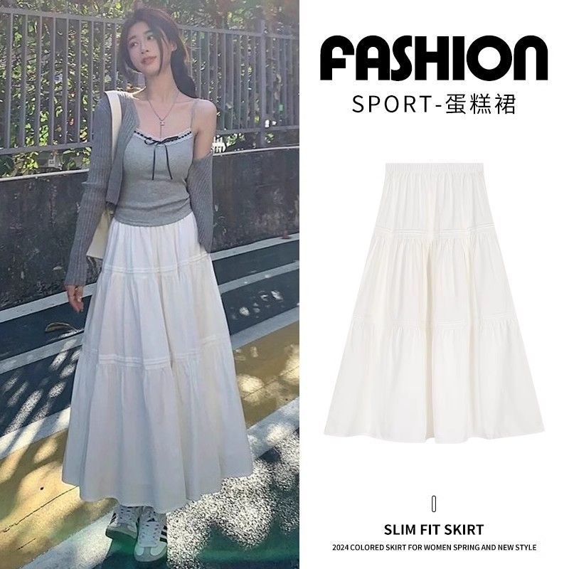 ホワイトケーキスカート女性のための春、秋、夏2025新しいハイウエストミッドレングスAラインスカートルーズ韓国スタイルチュチュスカート