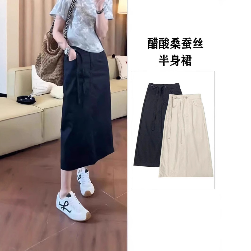 ZZ 無地コットンワークウェアカーキスカートレディース 2025 夏の新韓国スタイル多用途ハイウエスト A ラインスカート