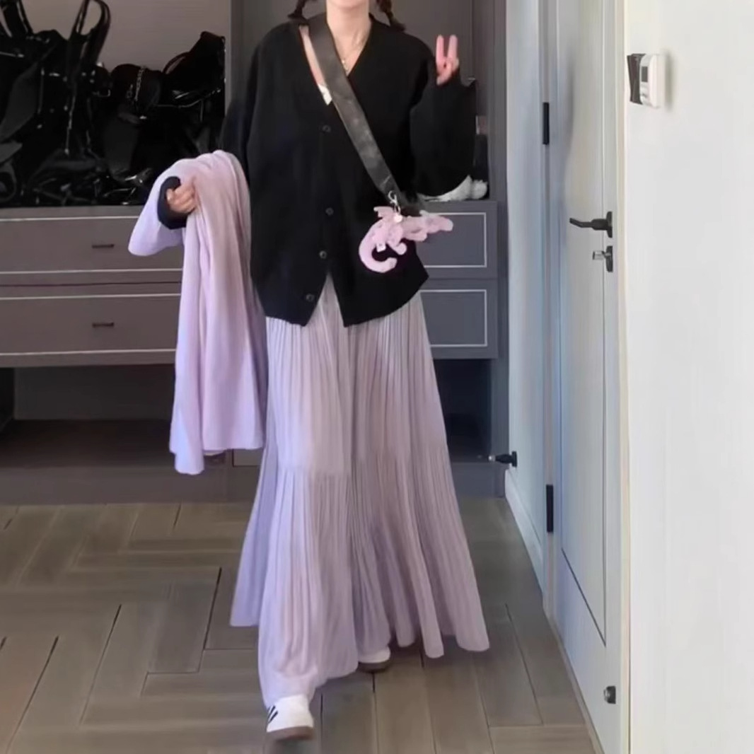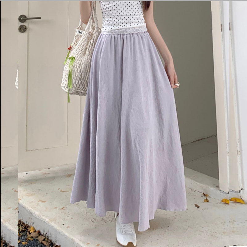 韓国スカート レディース 夏 パープル ハイウエスト Aラインスカート ケーキスカート 優しいデザイン 大きな裾 ミモレ丈スカート