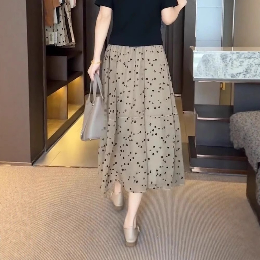 大きいサイズのフレンチフローラル気質スカート女性の夏の新しいファッションライト大人スタイル多用途ミドル丈Aラインスカート