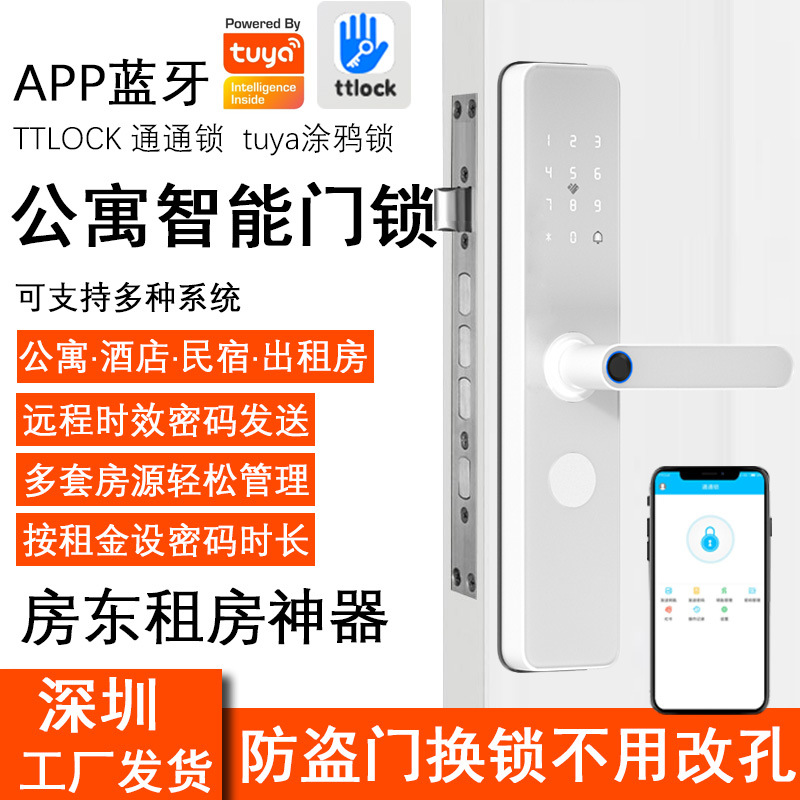白色公寓指纹密码锁APP远程通通锁涂鸦wifi酒店民宿防盗门刷卡锁