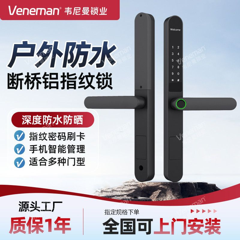 双面指纹断桥铝门锁马来西亚热销窄边框防水门锁庭院智能门锁
