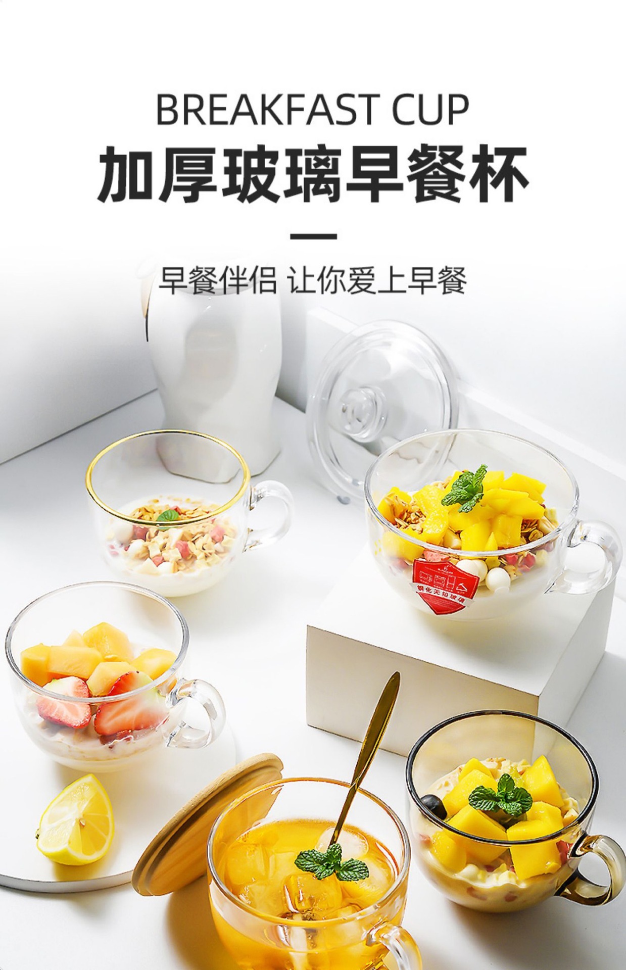 シリアルカップインビッグベリーカップガラスミルクシリアル朝食カップボウル蓋付きスプーンセット大容量卸売