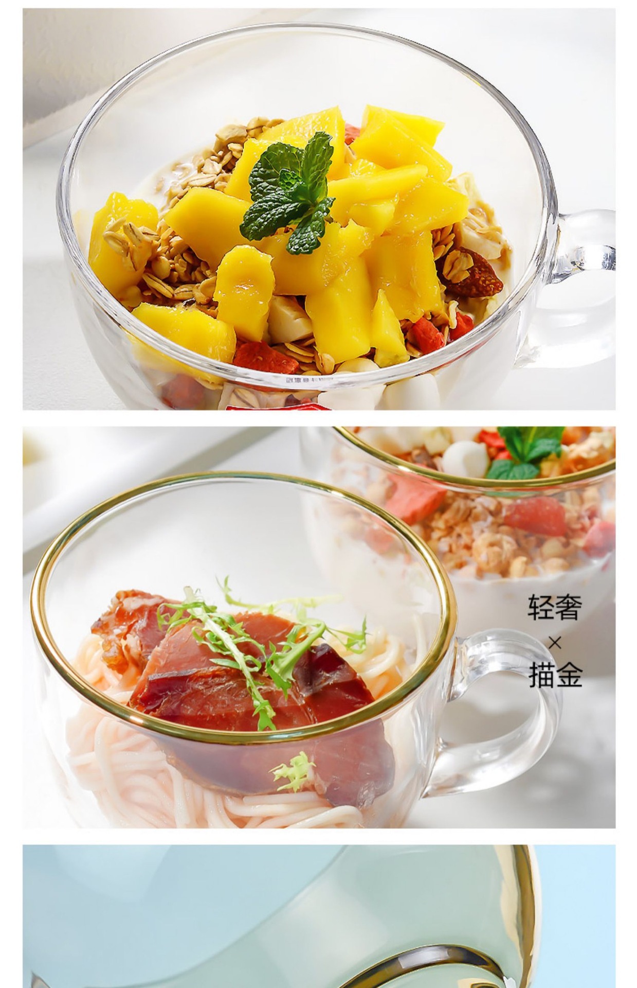 強化グラス金辺杯大容量朝食エンバクカップ家庭用牛乳カップ電子レンジ耐熱厚い蓋付き
