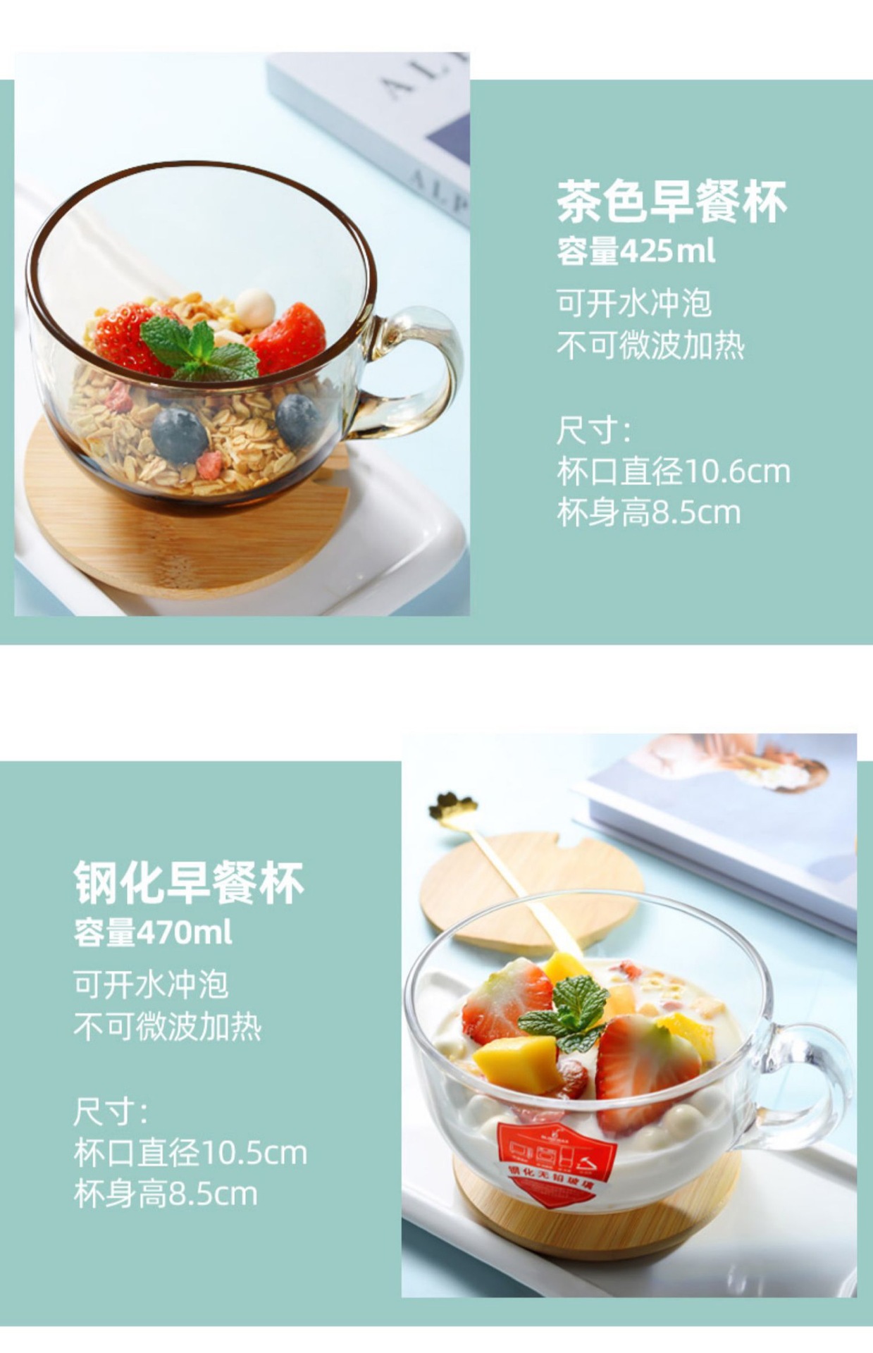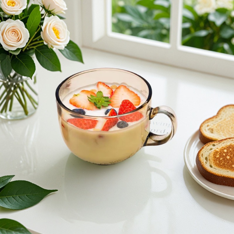 【新商品・送料無料】朝食カップ 北欧風 大型 オートミールカップ 家庭用ボウル ハンドル付き ガラスカップ ミルクカップ