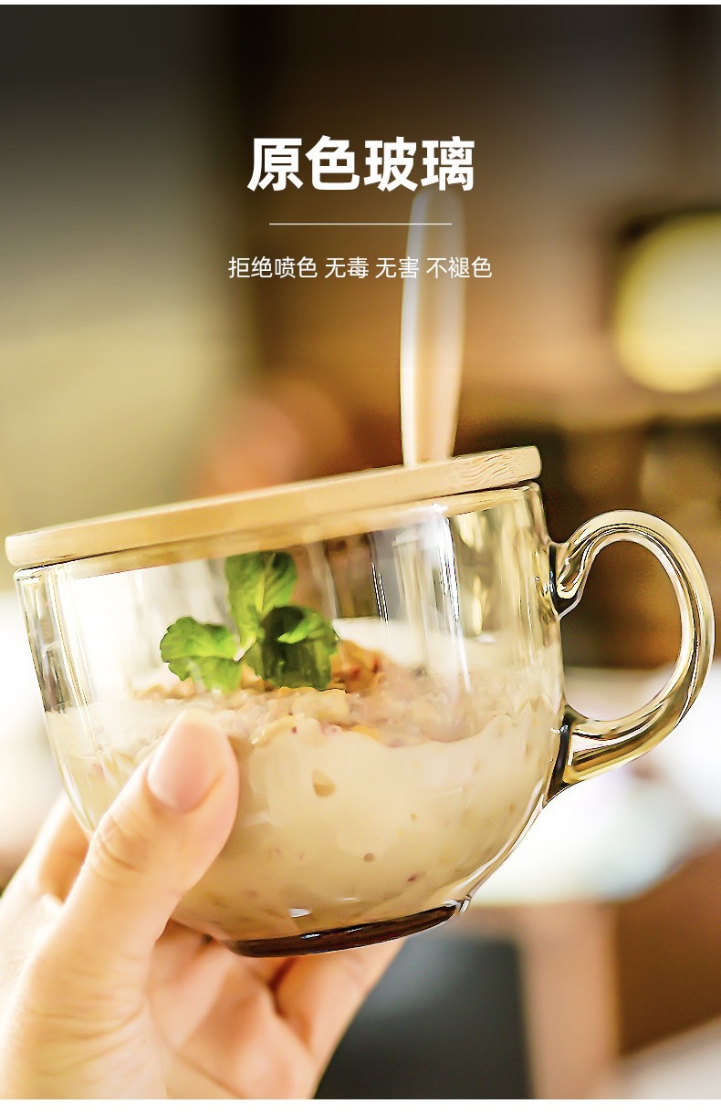 大容量グラスオートミール朝食カップ家庭用女性透明ミルクコーヒー蓋付きスプーンボウル取っ手カップ