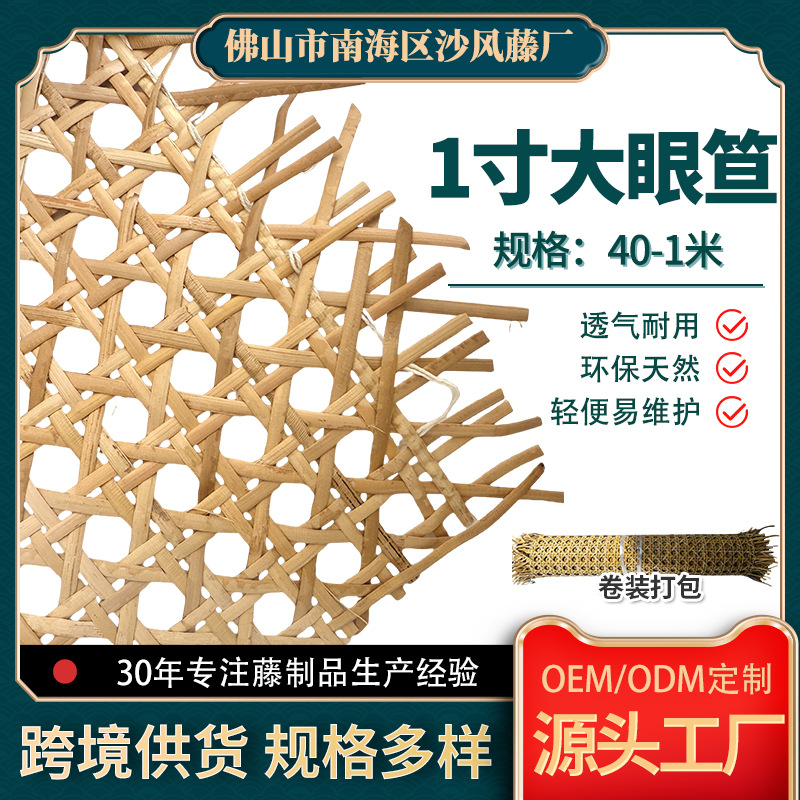 インドネシアの本物の籐素材 1inch 大きな目のランプシェードベニヤ装飾籐マット家具スクリーン織りネット