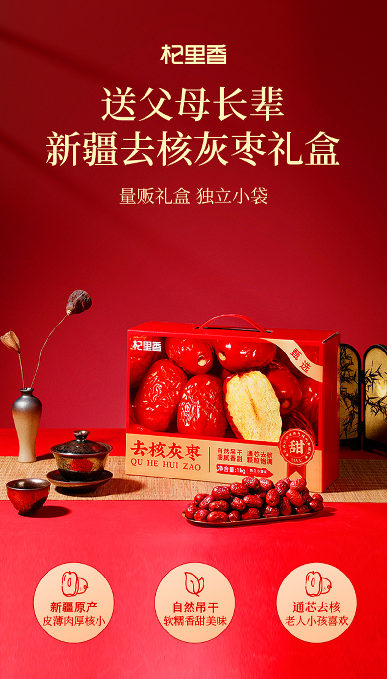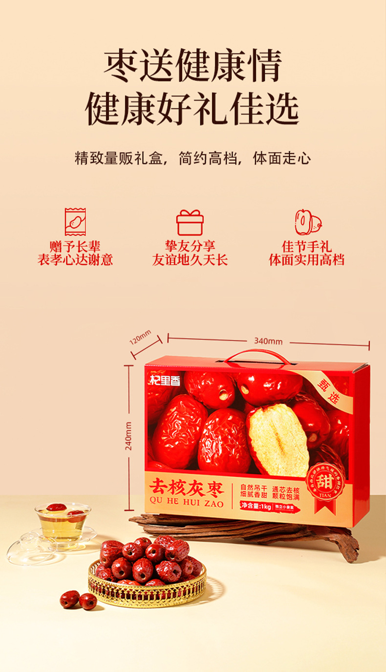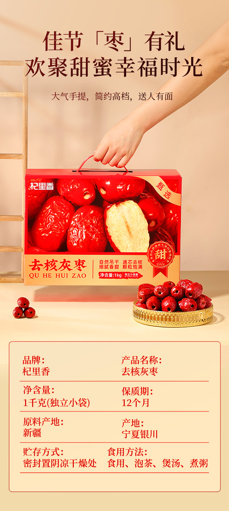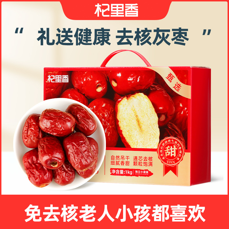 杞里香新疆灰枣礼盒1kg节日礼盒 伴手礼大果去核红枣干独立装0零