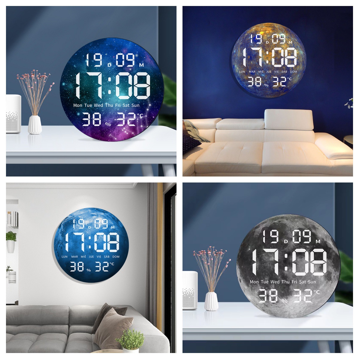 多功能LED电子挂钟大屏幕客厅时钟跨境热销简约闹钟氛围灯简约
