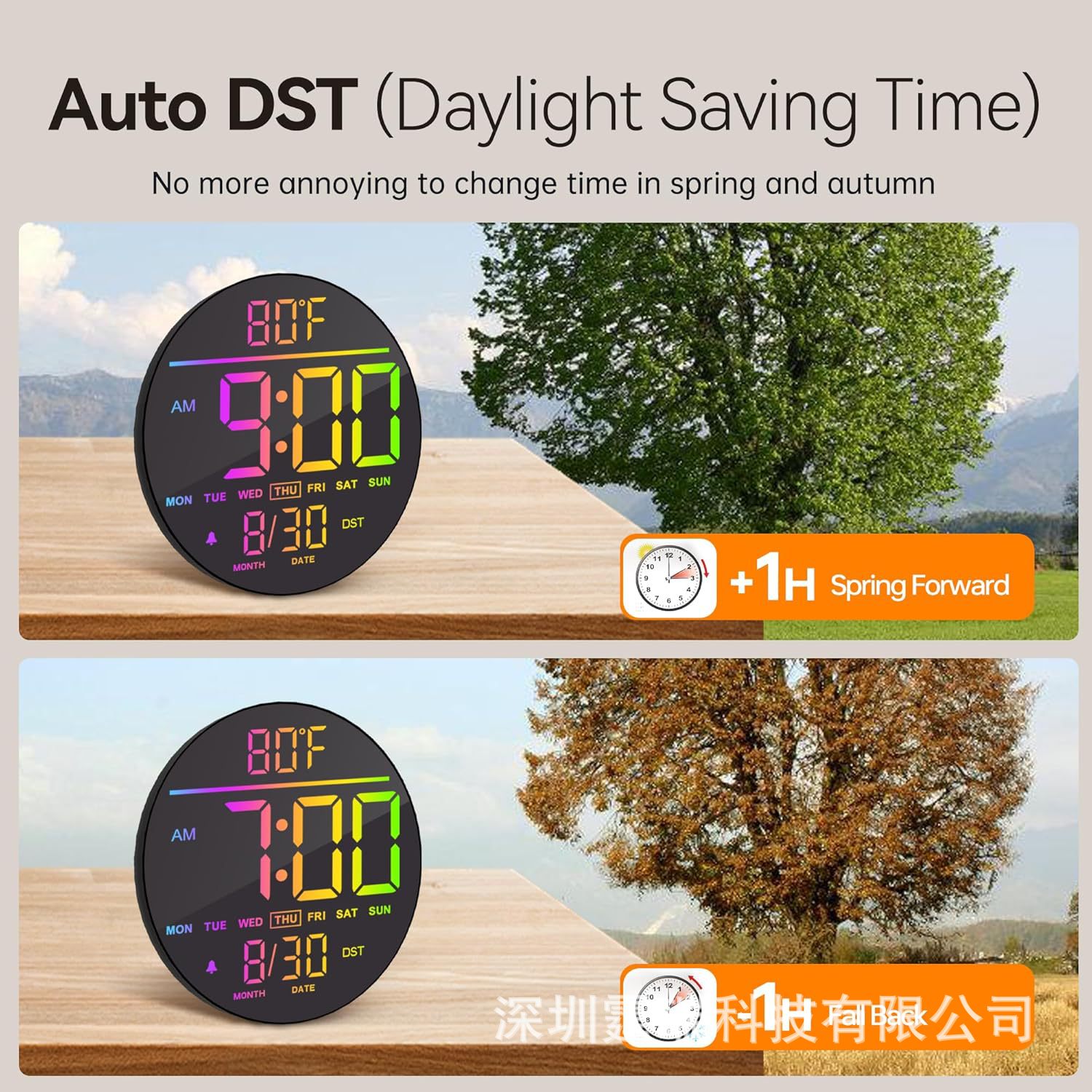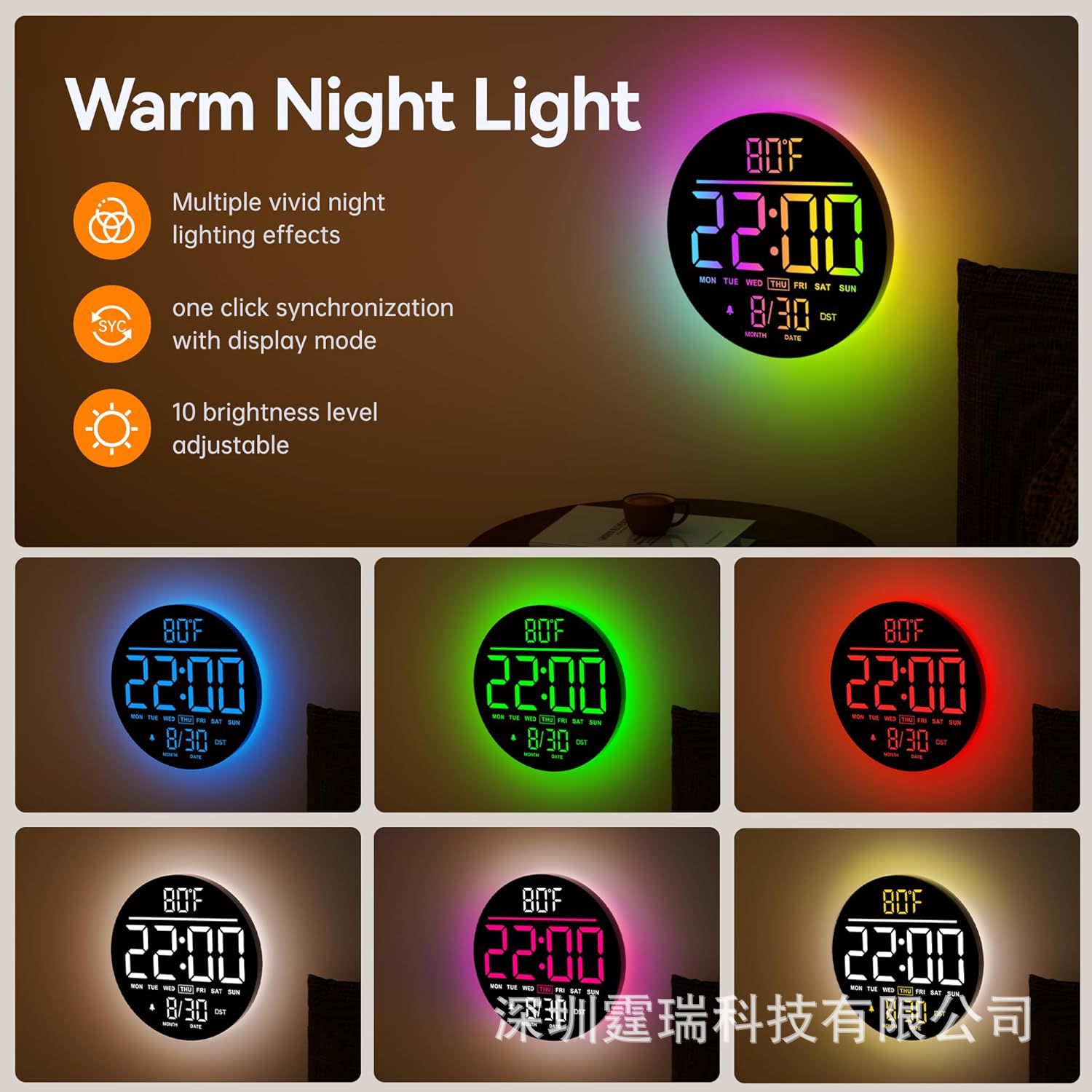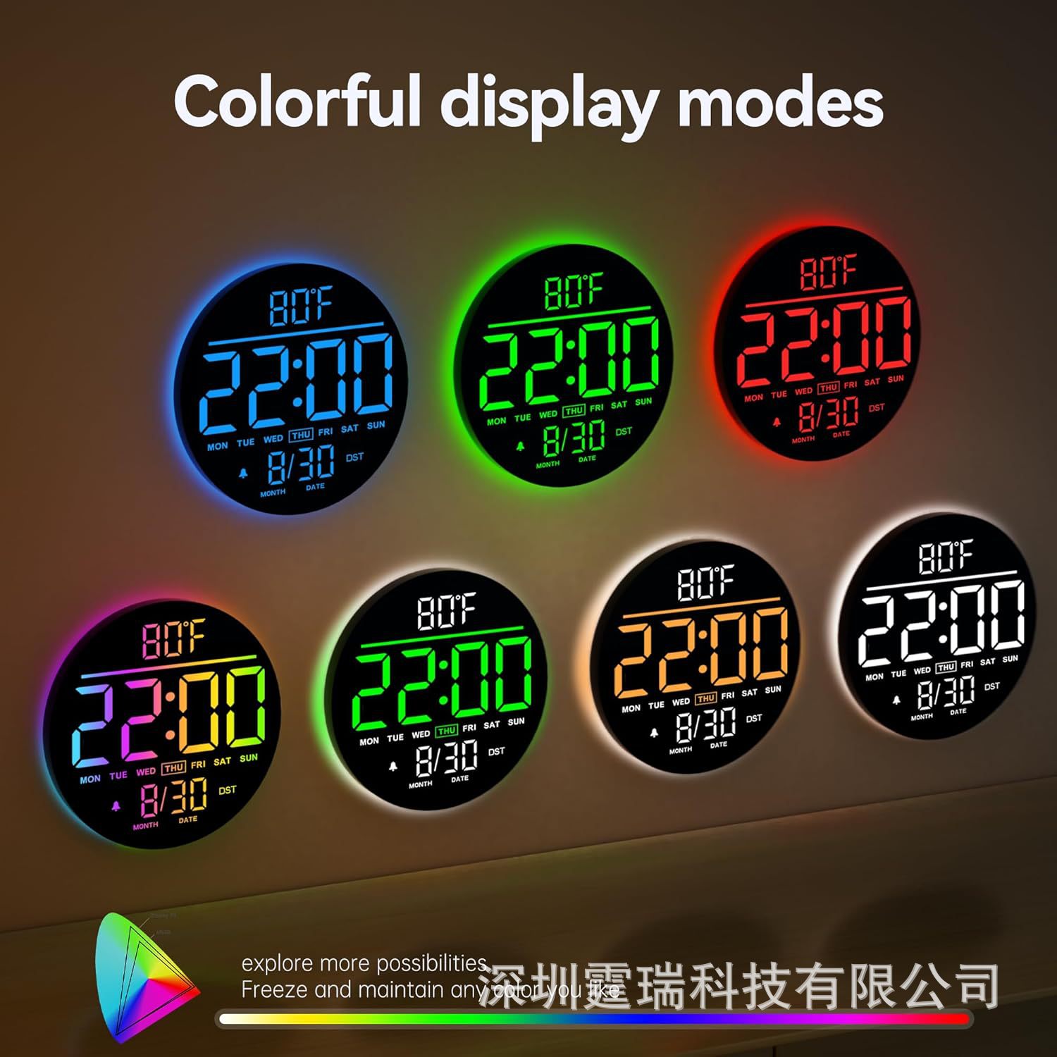 跨境新品RGB客厅挂钟大字体变色时钟氛围灯多功能家居家饰6695R