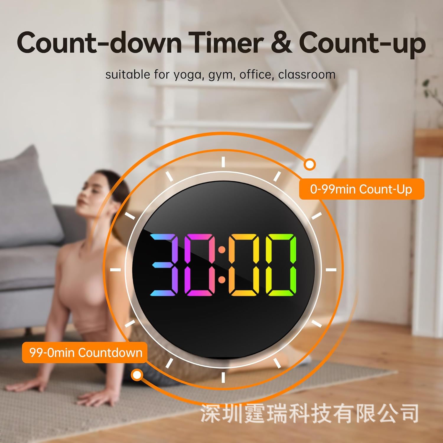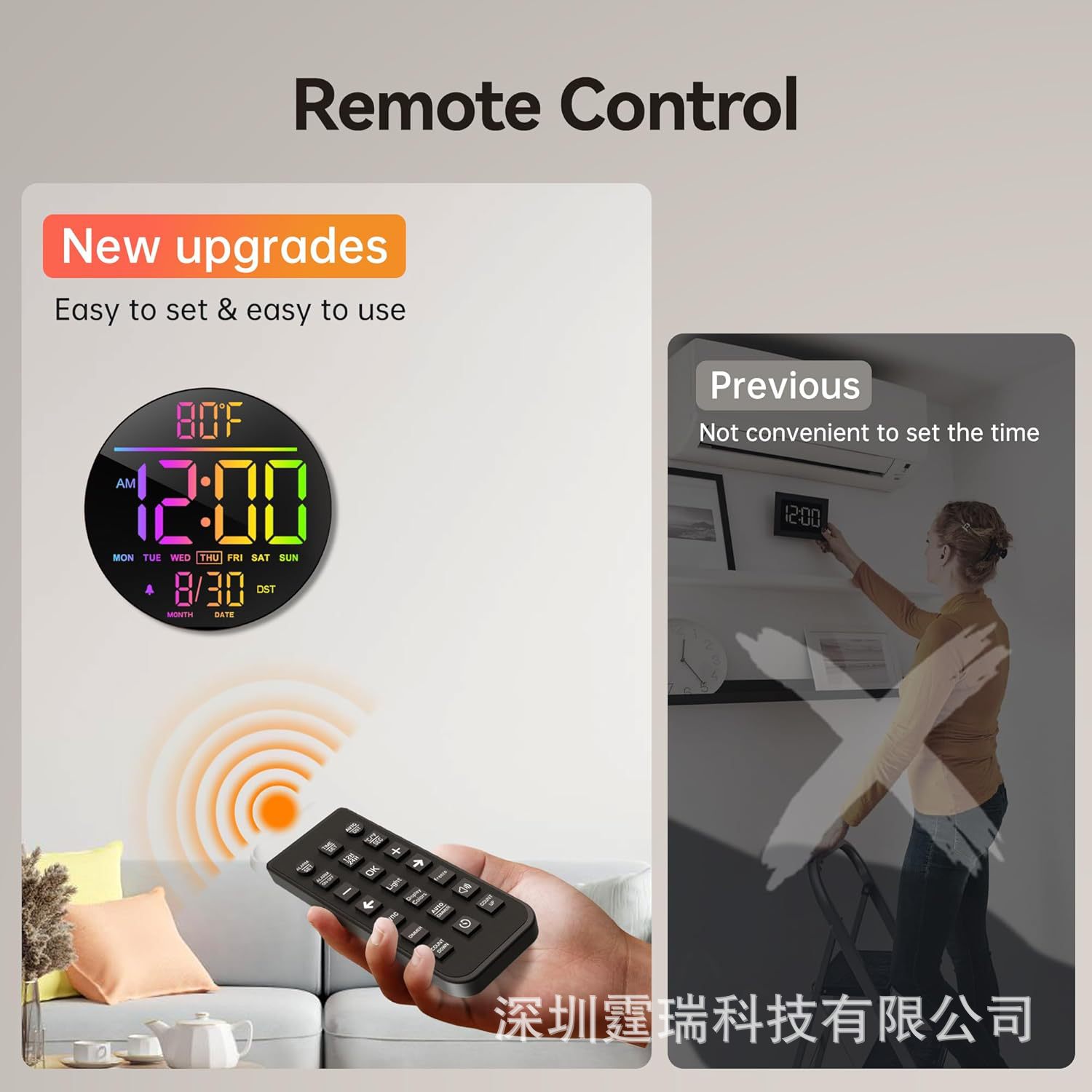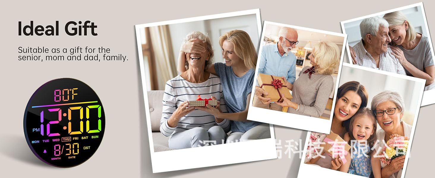 亚马逊热销款16寸大LED型RGB数字壁挂式时钟可远程遥控夜灯和闹钟