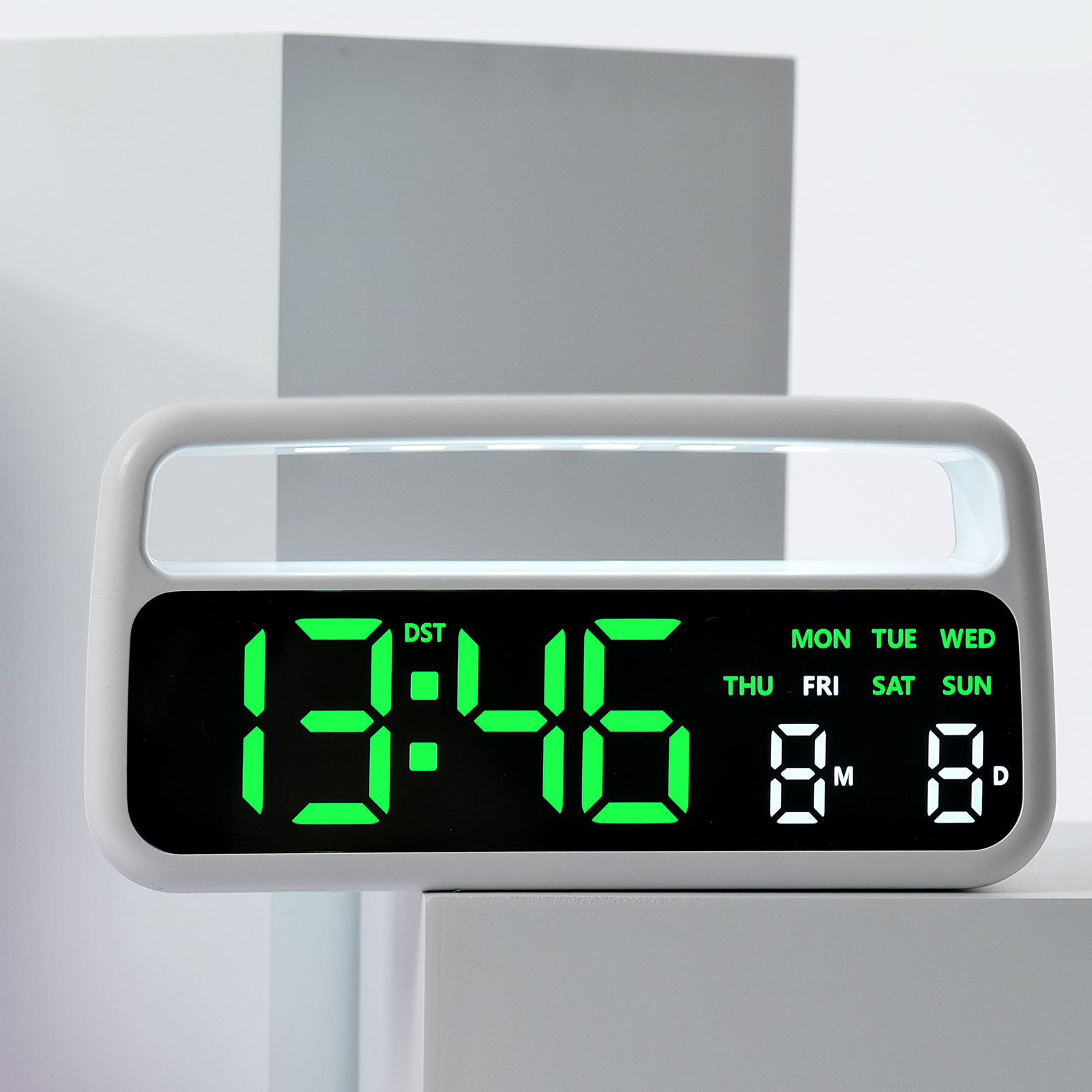 新しいスタイルのフレームレス壁掛け時計は掛けて立てることができ、多機能電子時計、シンプルなデジタル時計表示、リビングルームの時計です。
