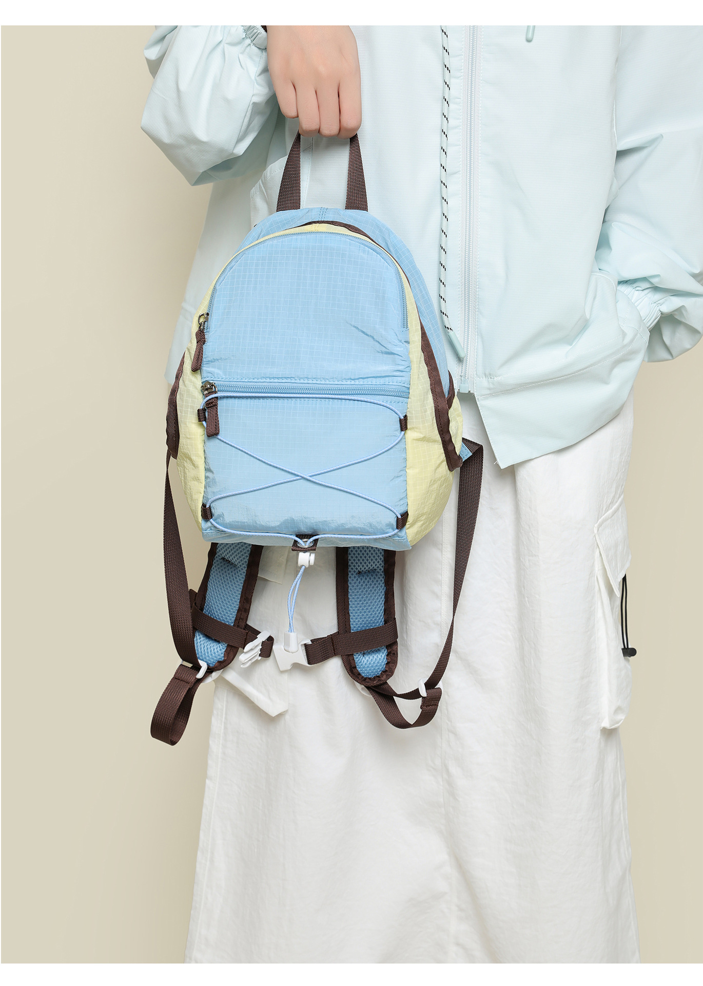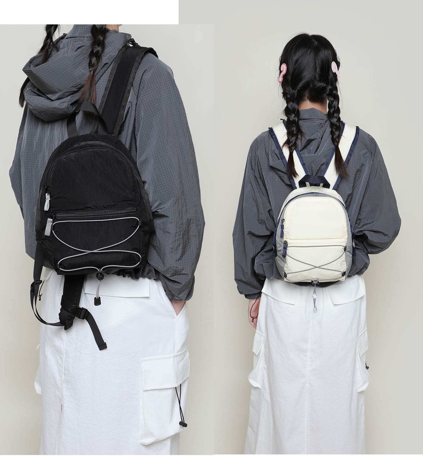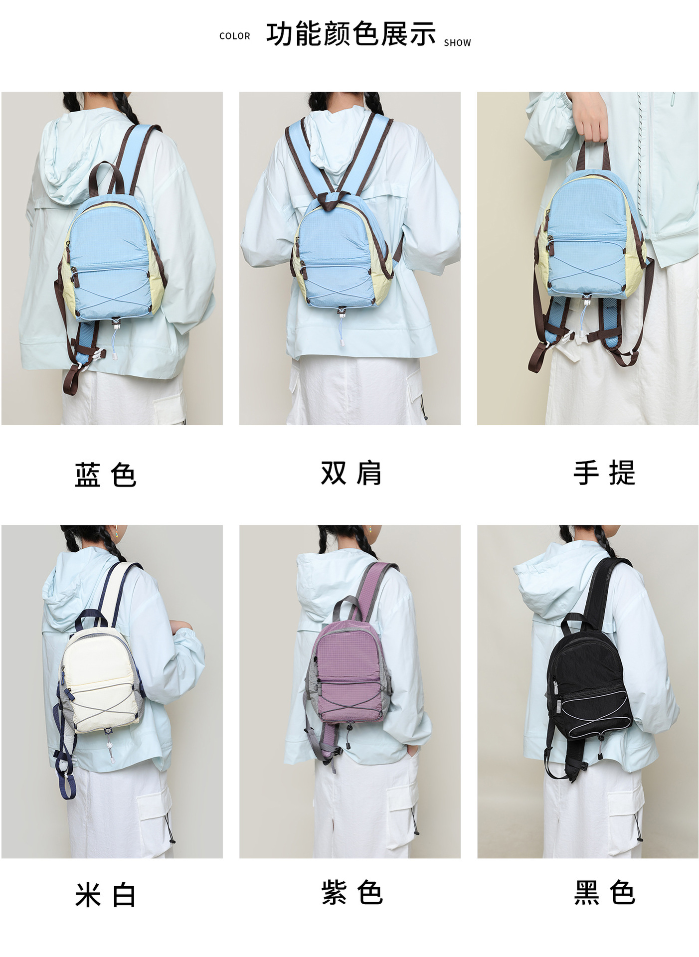 2025春の新型ナイロン布の紋様のカジュアルなリュックサックの小さいリュックサックの女性の軽い韓国系insは縄のかばんを引き出します。