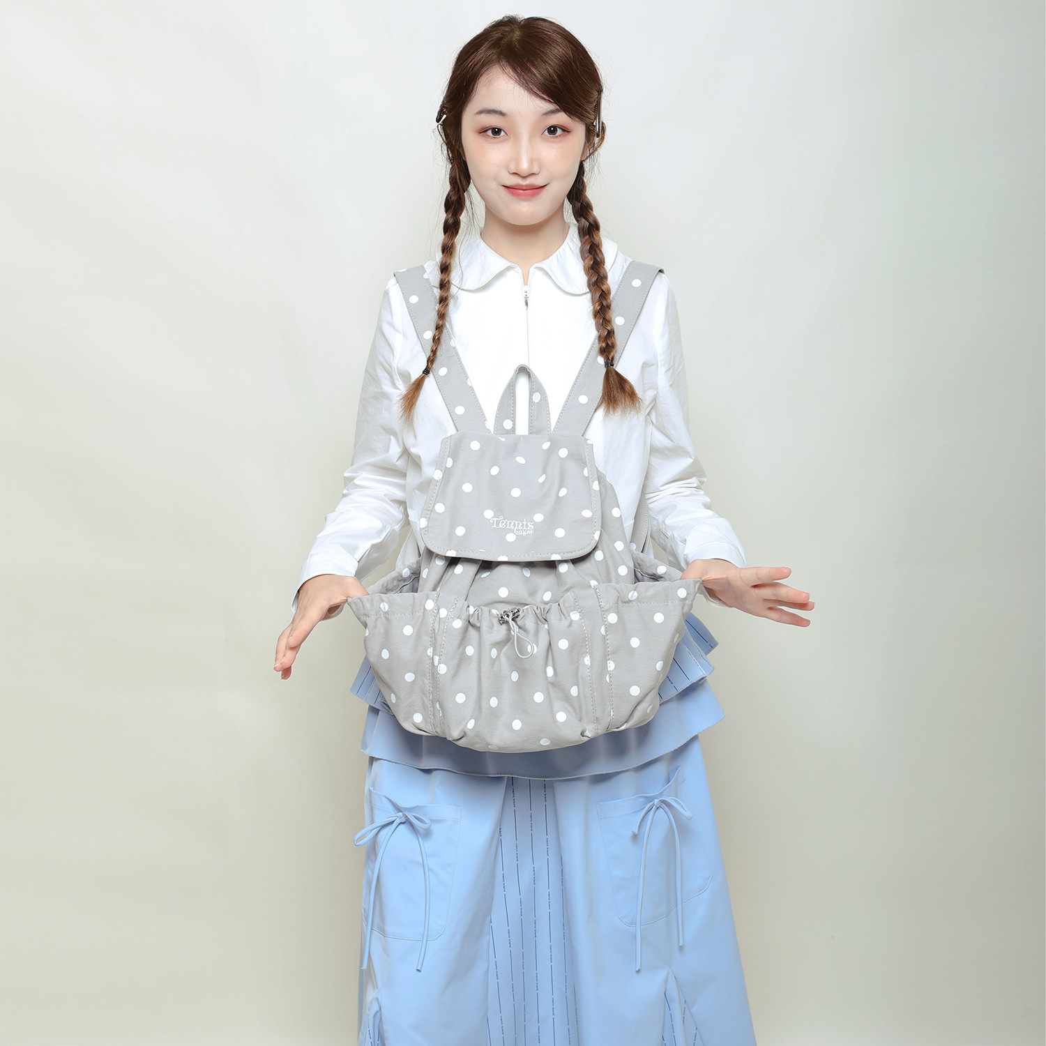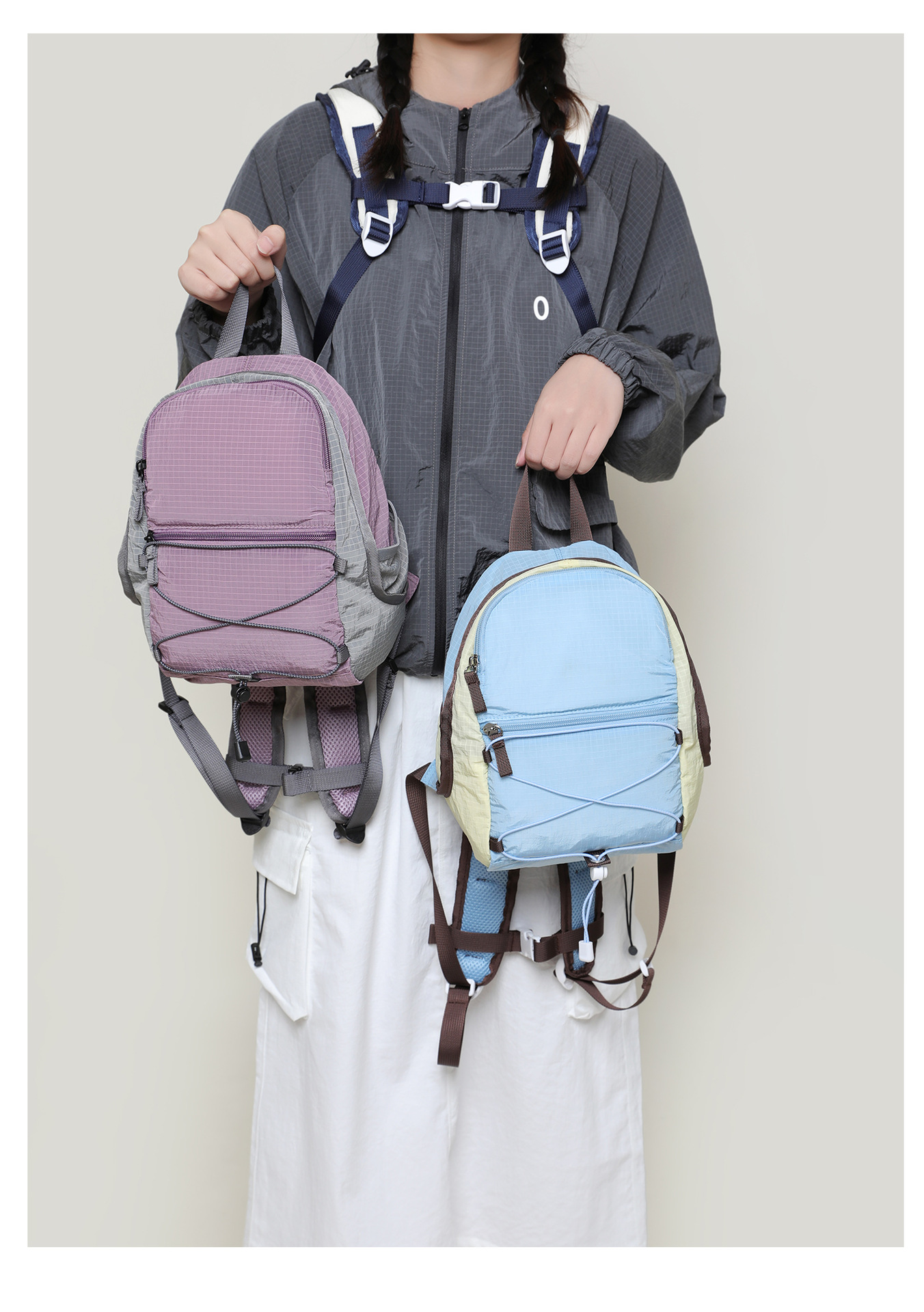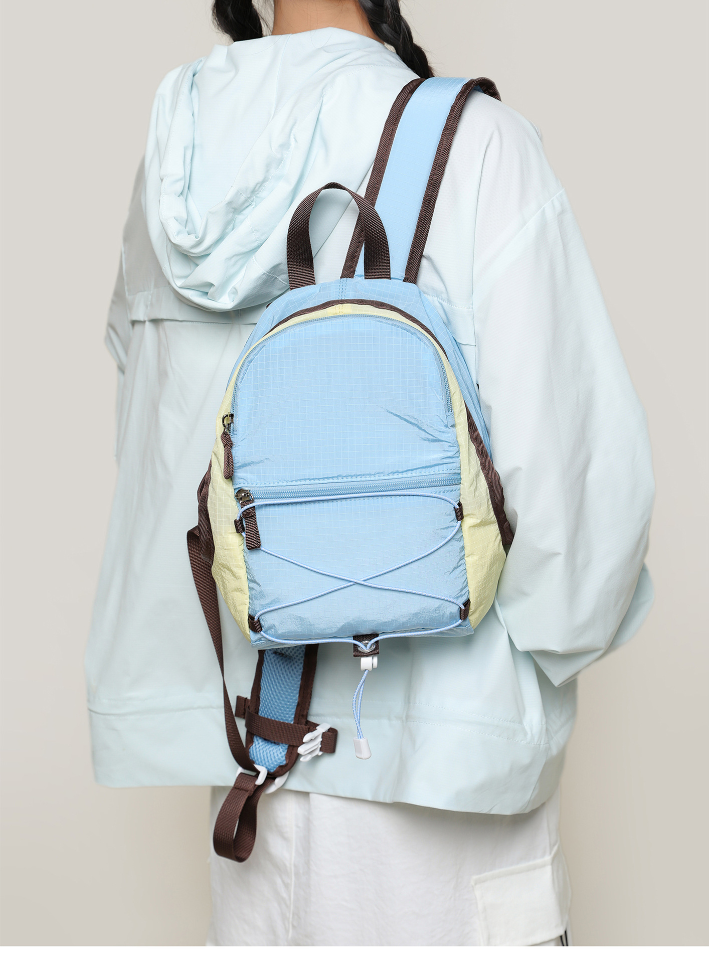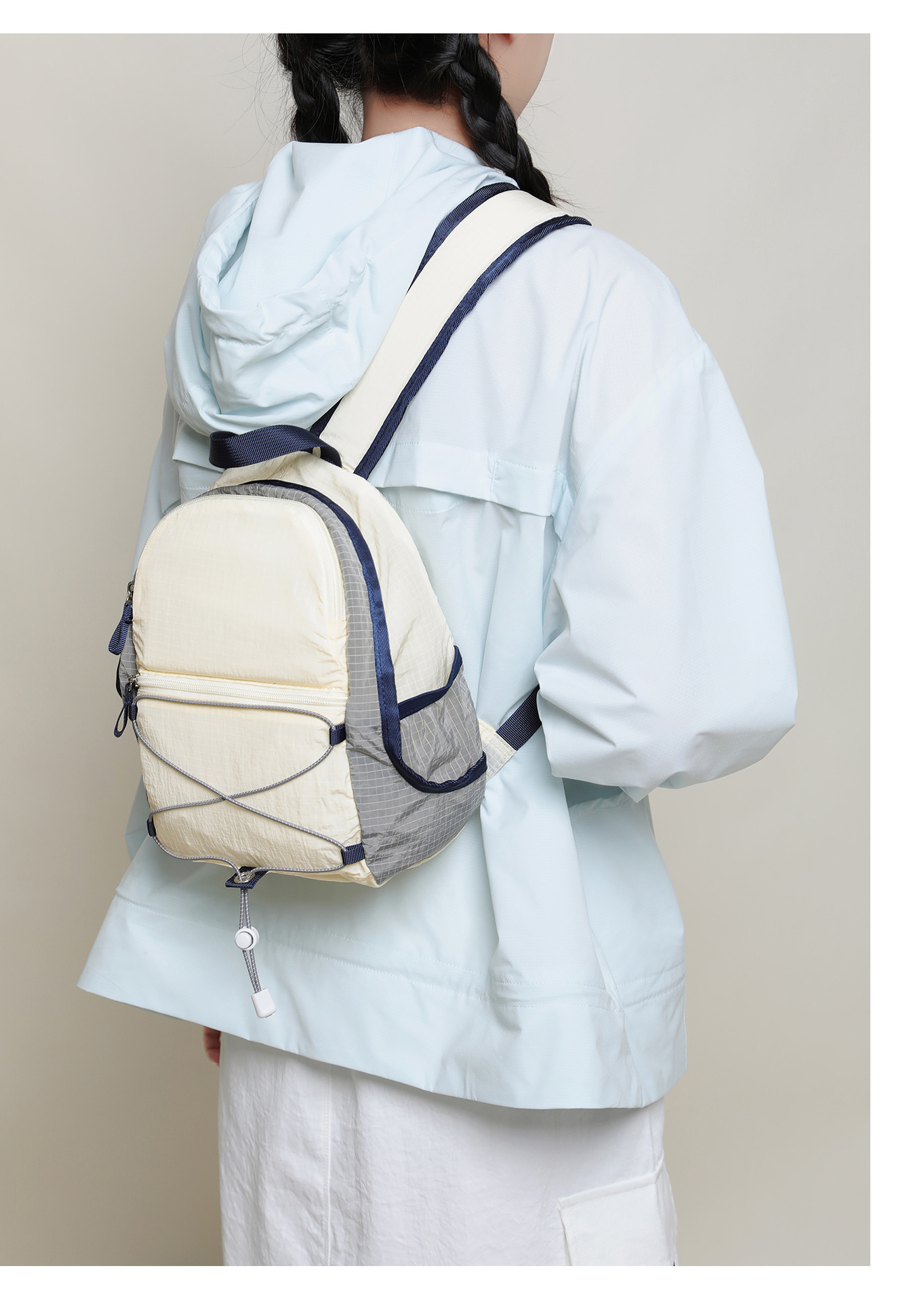 2025春の新型ナイロン布の紋様のカジュアルなリュックサックの小さいリュックサックの女性の軽い韓国系insは縄のかばんを引き出します。