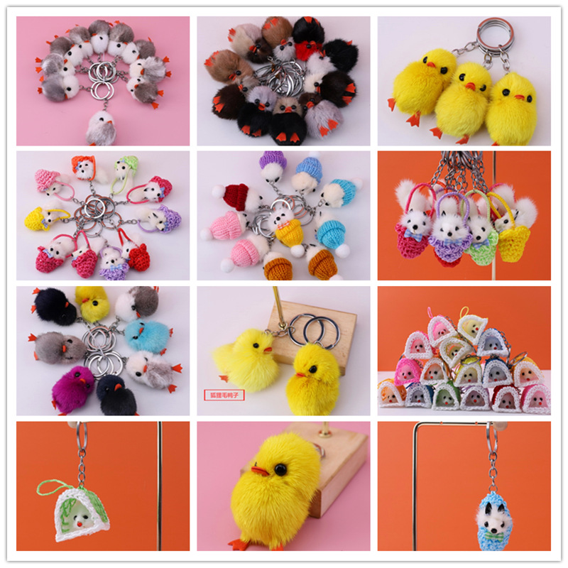 小黄鴨のミンクの毛を厳選して、キツネの毛のキーホルダーを編みます。