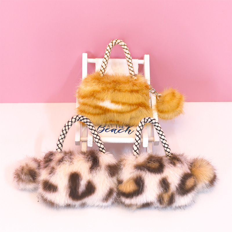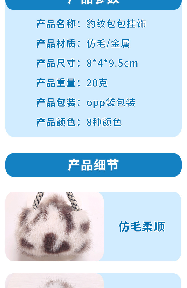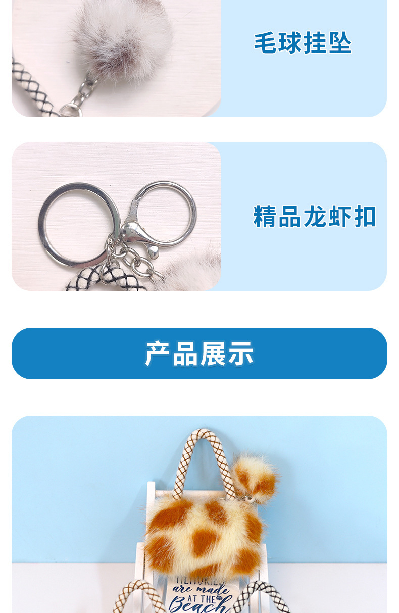 豹纹毛绒包包挂件爆款韩系创意时尚汽车小提包挂件毛球配饰钥匙扣