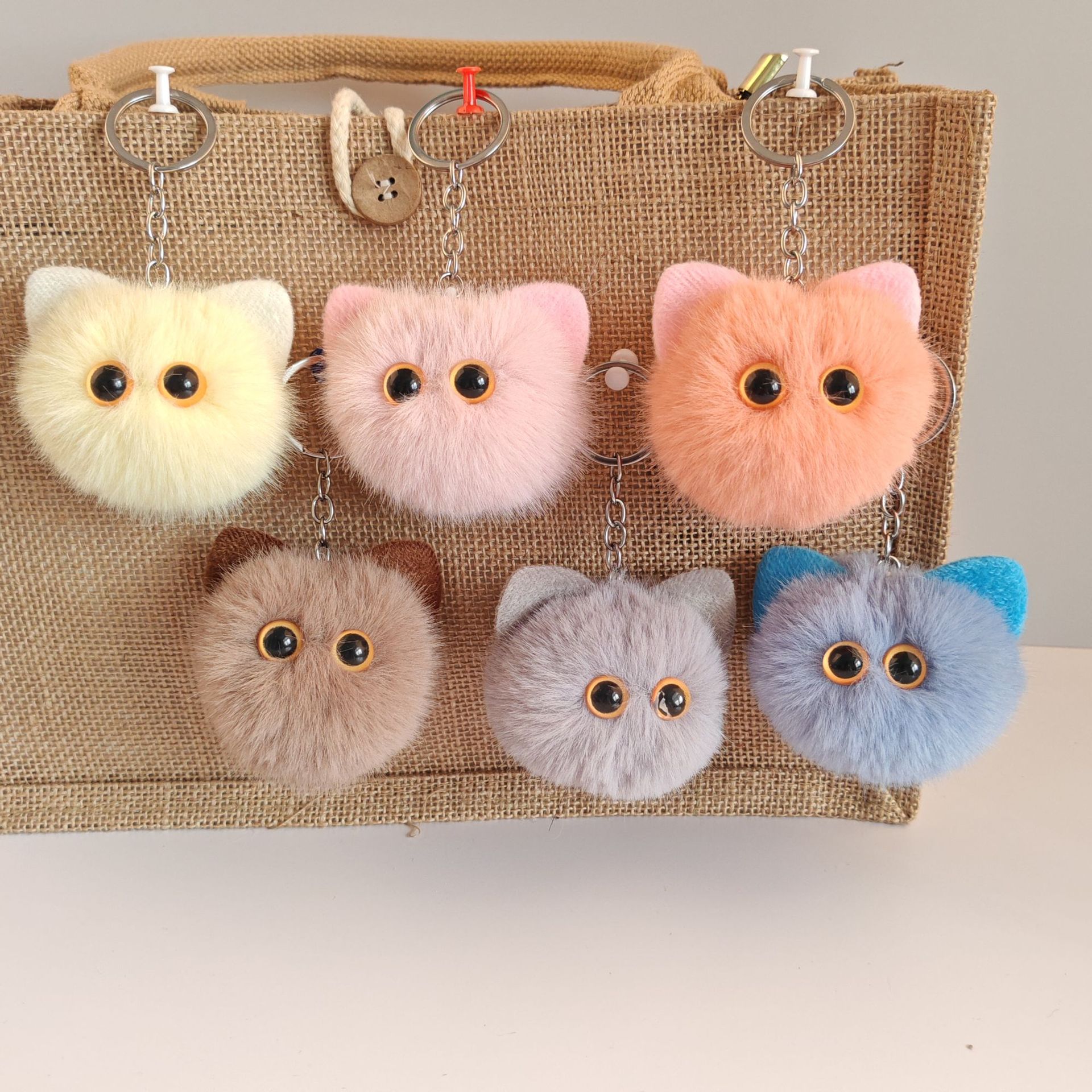 かわいいカラーの毛の猫の頭のキーホルダーのリュックサックの小さいペンダントの車のキーチェーンの子供の子供のプレゼント