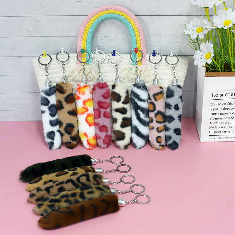 新款创意豹纹包包钥匙扣挂件可爱毛绒背包手提包装饰配件挂件批发