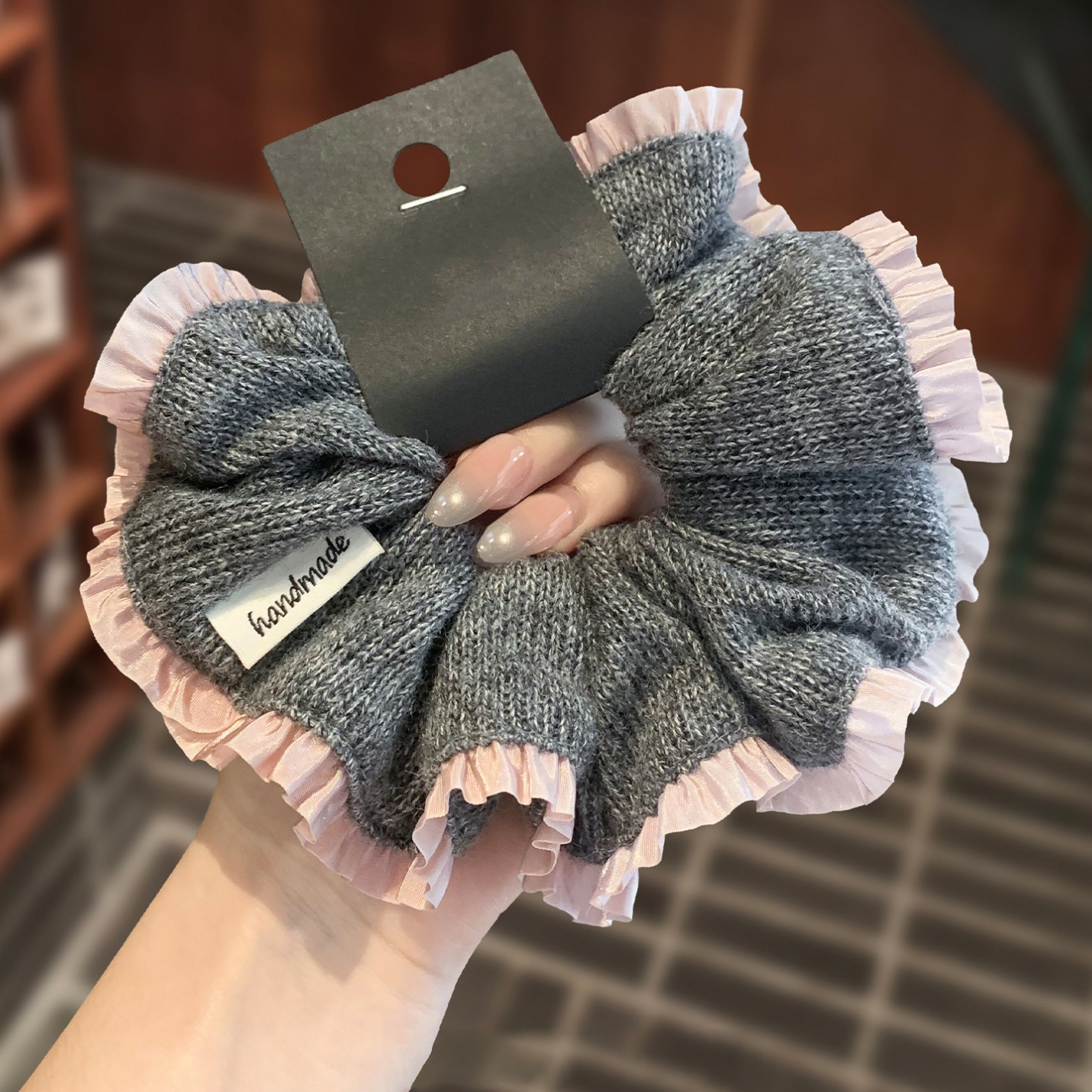 韩系灰色毛线针织大号大肠发圈女气质扎头发丸子头发绳低马头绳