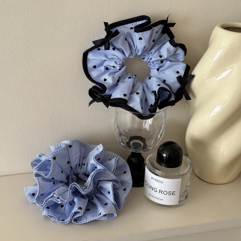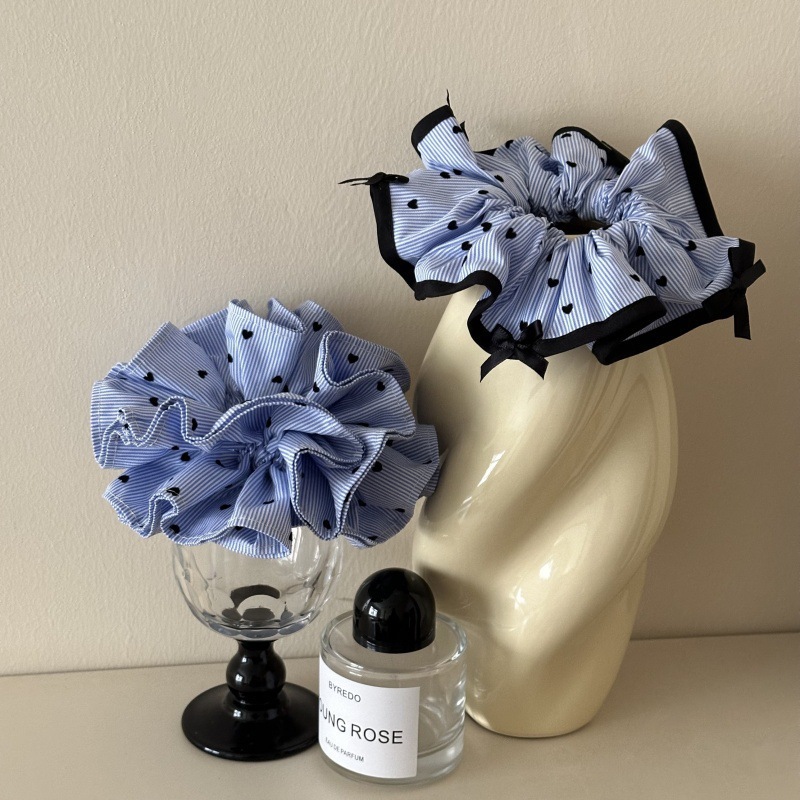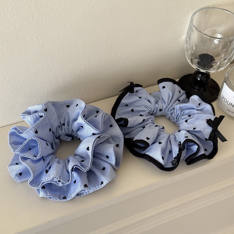韓国風ブルーストライププリーツヘアバンド、高級ラブプリーツヘアバンド、気質、万能ポニーテールヘアロープヘアアクセサリー