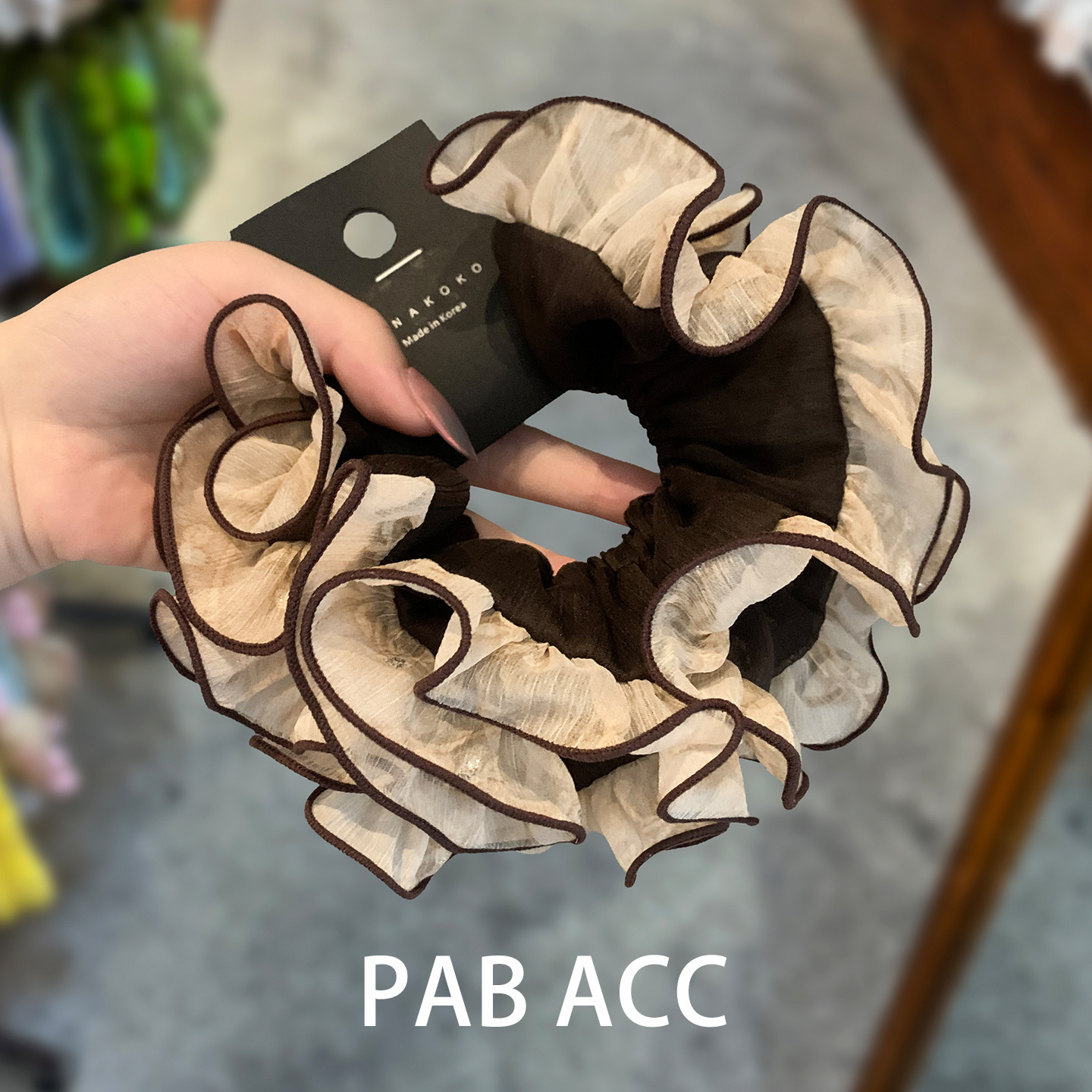 韩国新款小众双层撞色绢纱木耳边肥肠圈立体饱满扎发圈丸子头花女