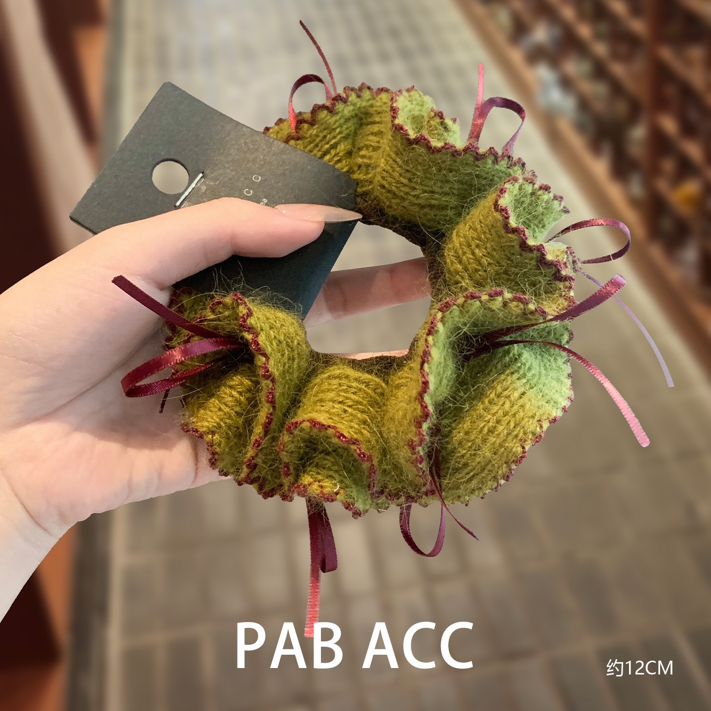 韩国森系显白果绿撞色针织毛绒蝴蝶结发圈双层软糯高端弹力皮筋