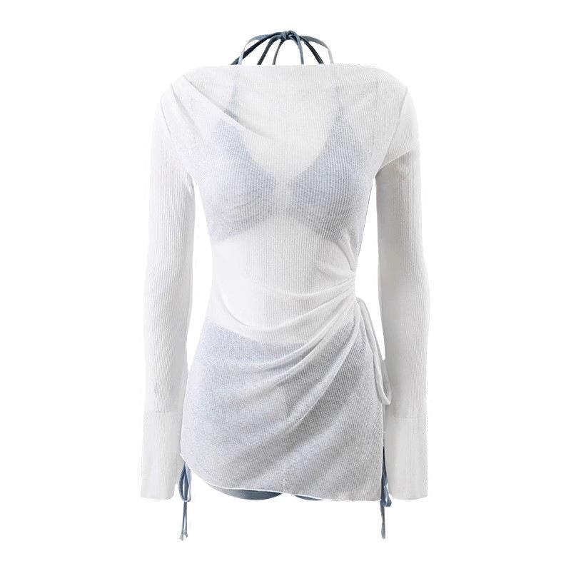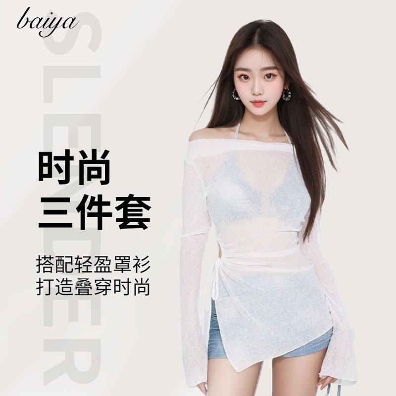水着ヨーロッパとアメリカのビキニ海辺チューブトップビキニ休暇新しい女性水着ホルターネックセクシーなガーゼスカート 3 点セット