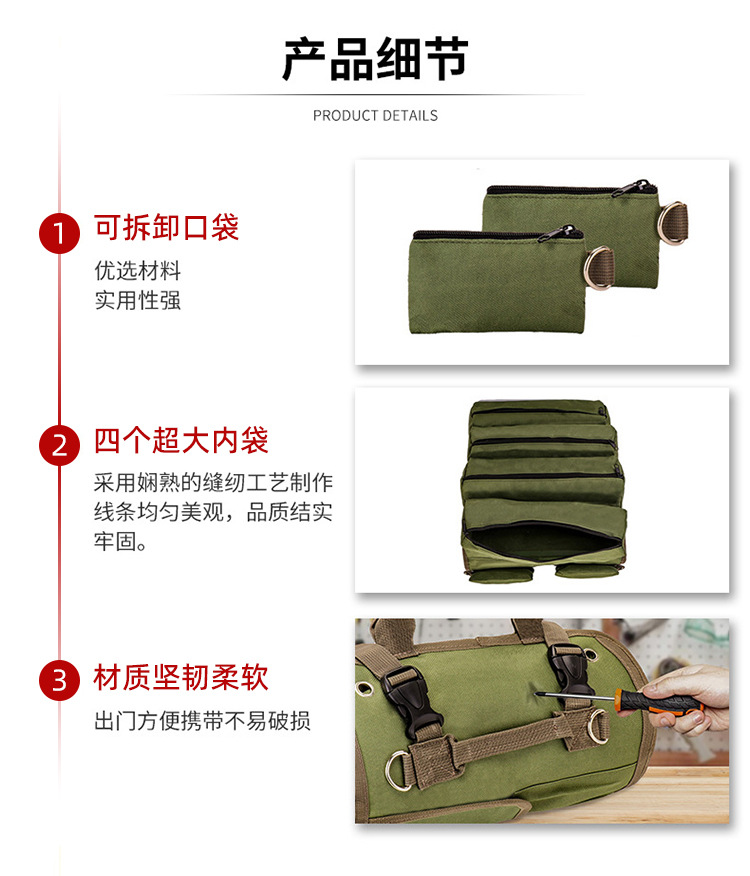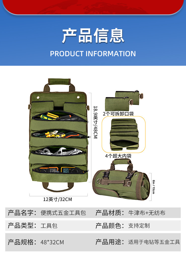 进出口五金多功能电工维修工具包耐磨加厚便携手提卷包工具包卷包