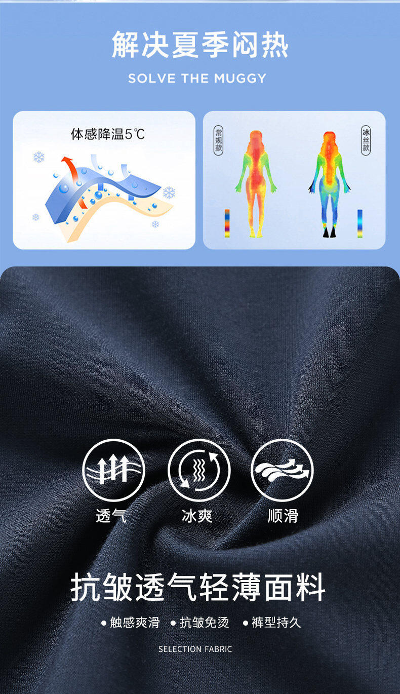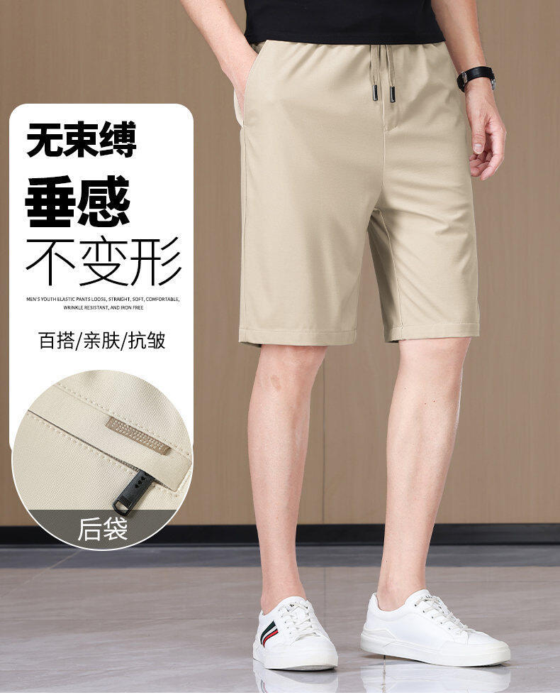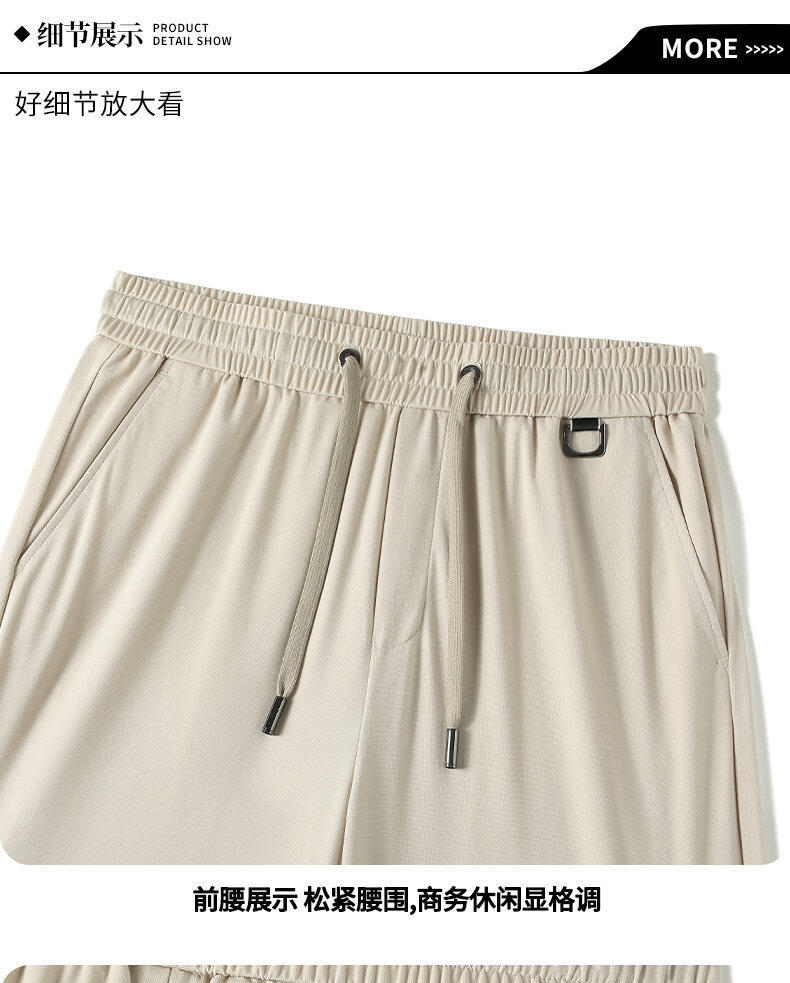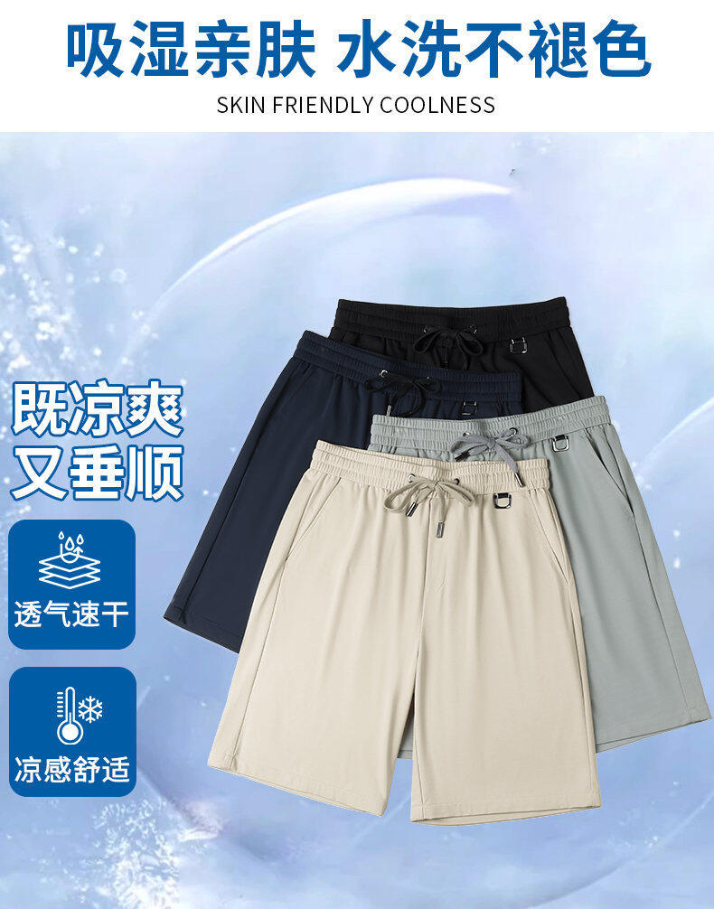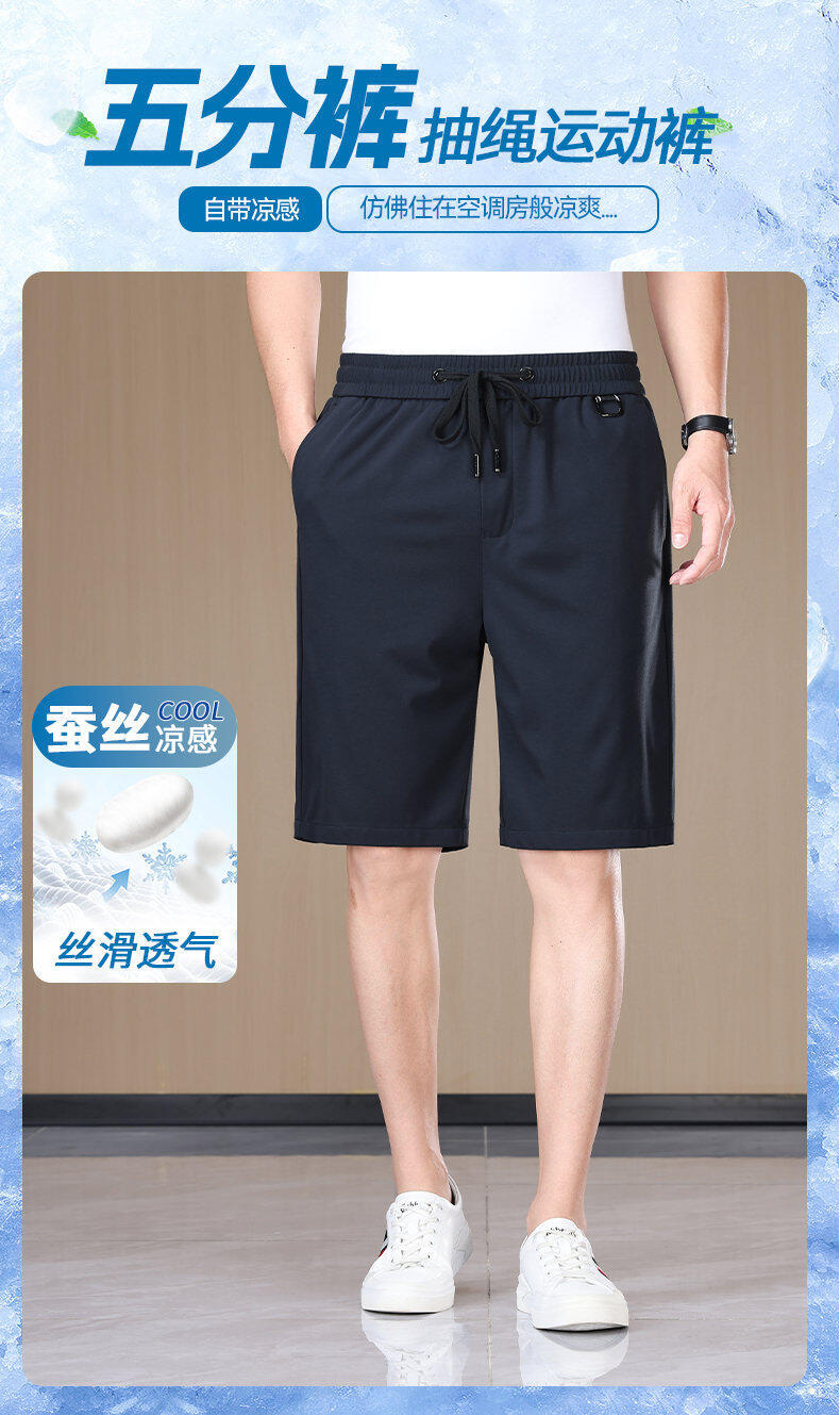 2025年新作夏マルベリーシルククール通気性ノンスティックグレー5点パンツ若者と中年ビジネスカジュアルスポーツパンツ