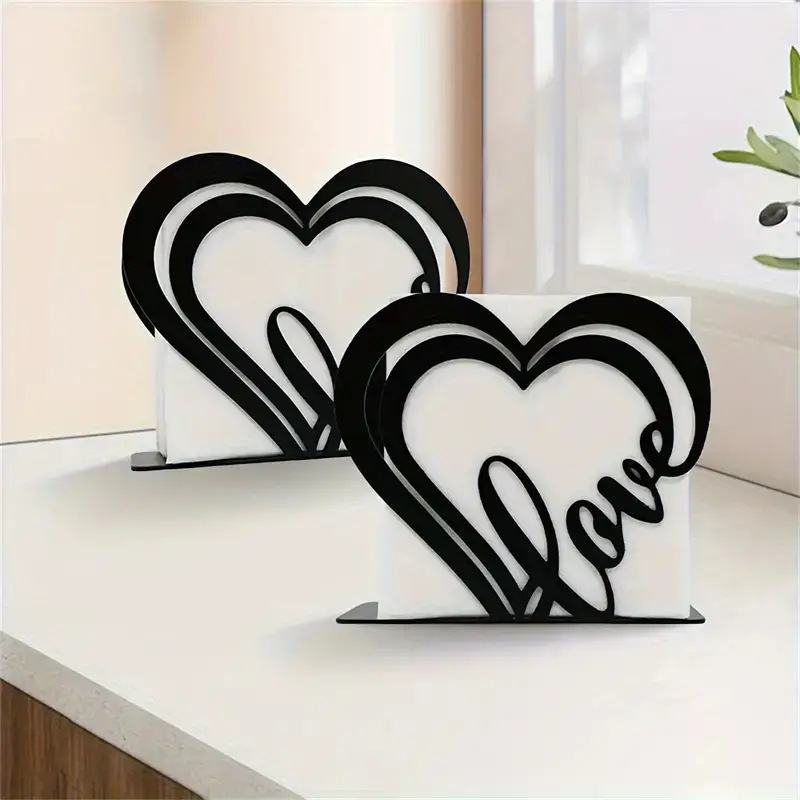 おしゃれでシンプルなハート型の鉄製ナプキンホルダー、自立型卓上ペーパータオル収納ボックス、上品なペーパータオルホルダー、軽やかな高級感