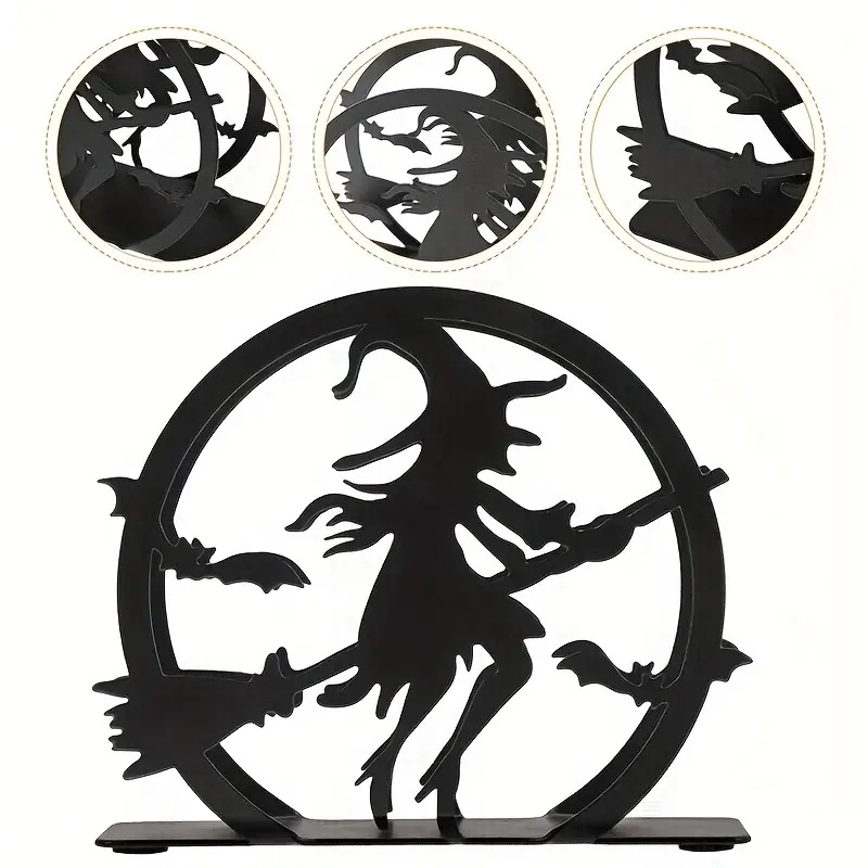 魔法のほうき魔女スタイル金属ナプキンホルダーハロウィンテーマティッシュホルダークリエイティブ面白いレストラン装飾