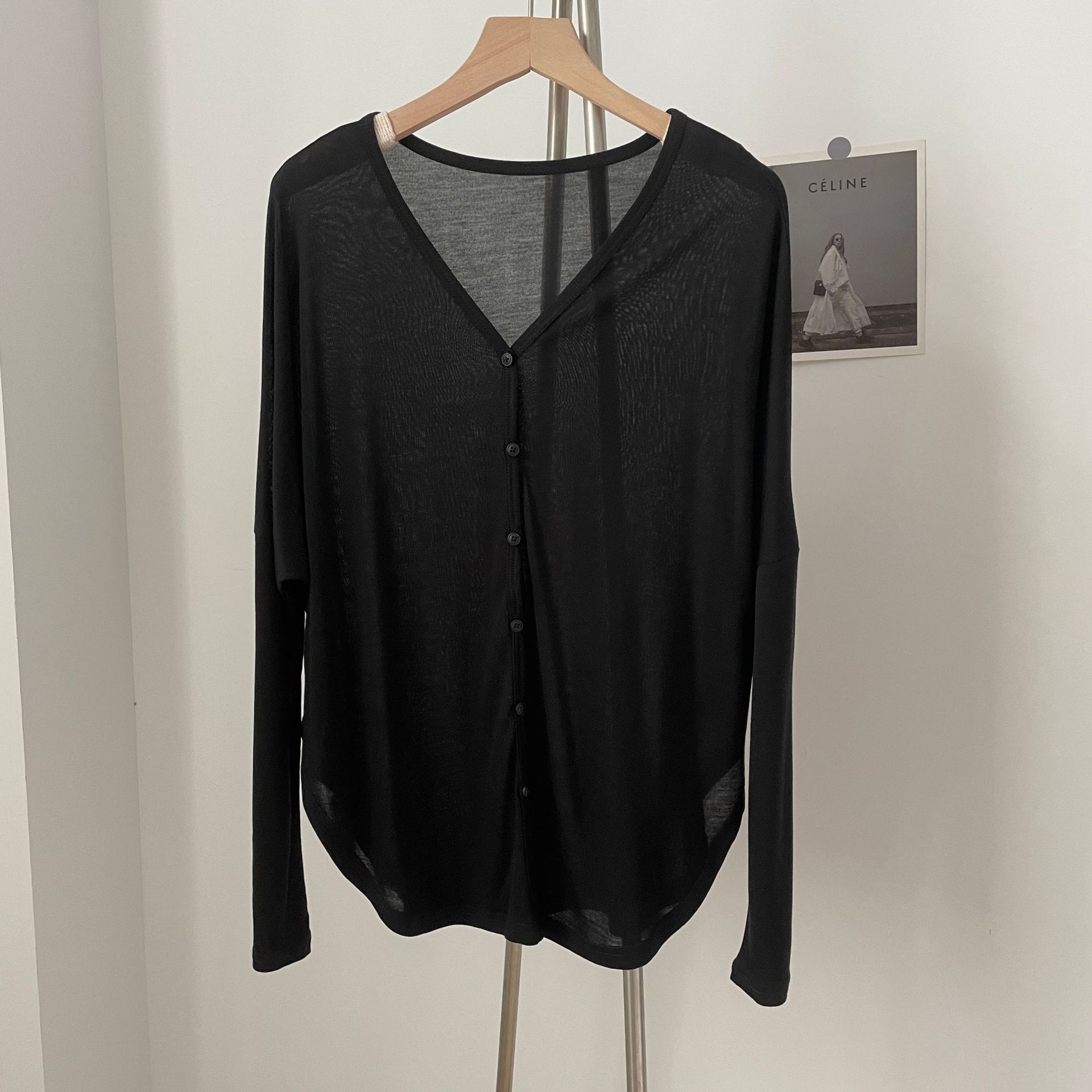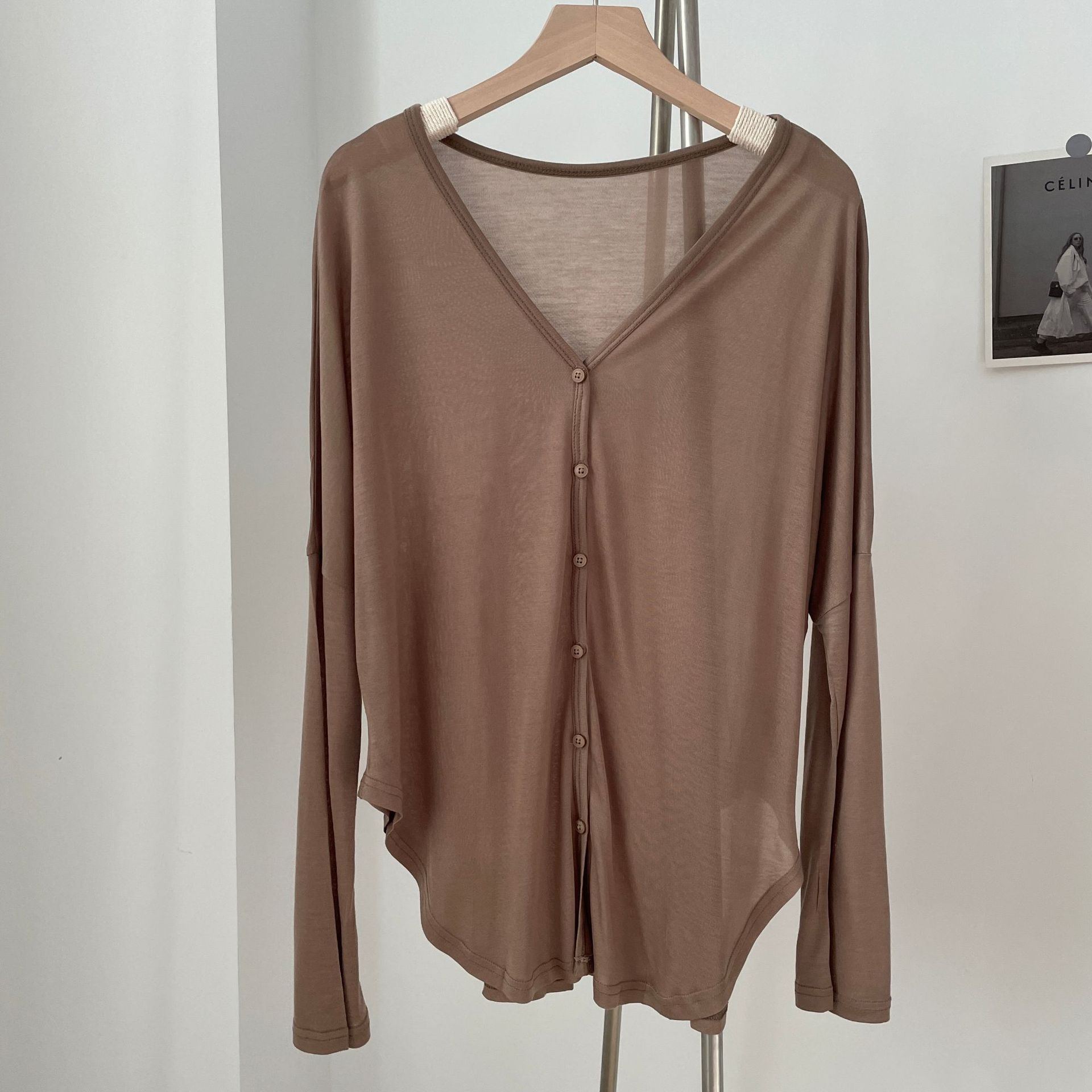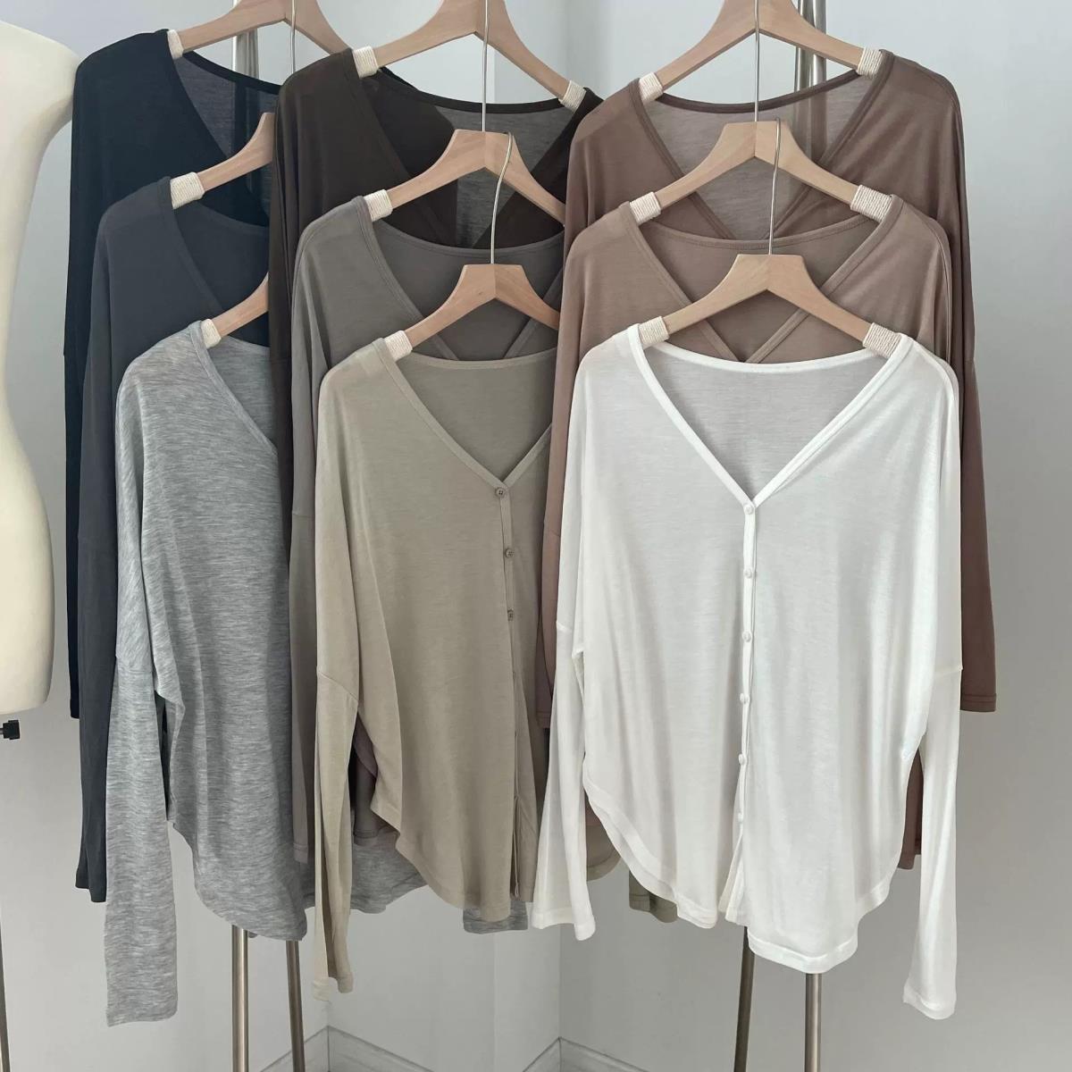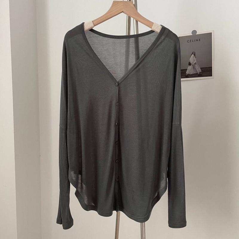 春夏薄手不規則Vネックボタンカーディガン長袖日焼け止め空調シャツ大きいサイズレディースジャケット