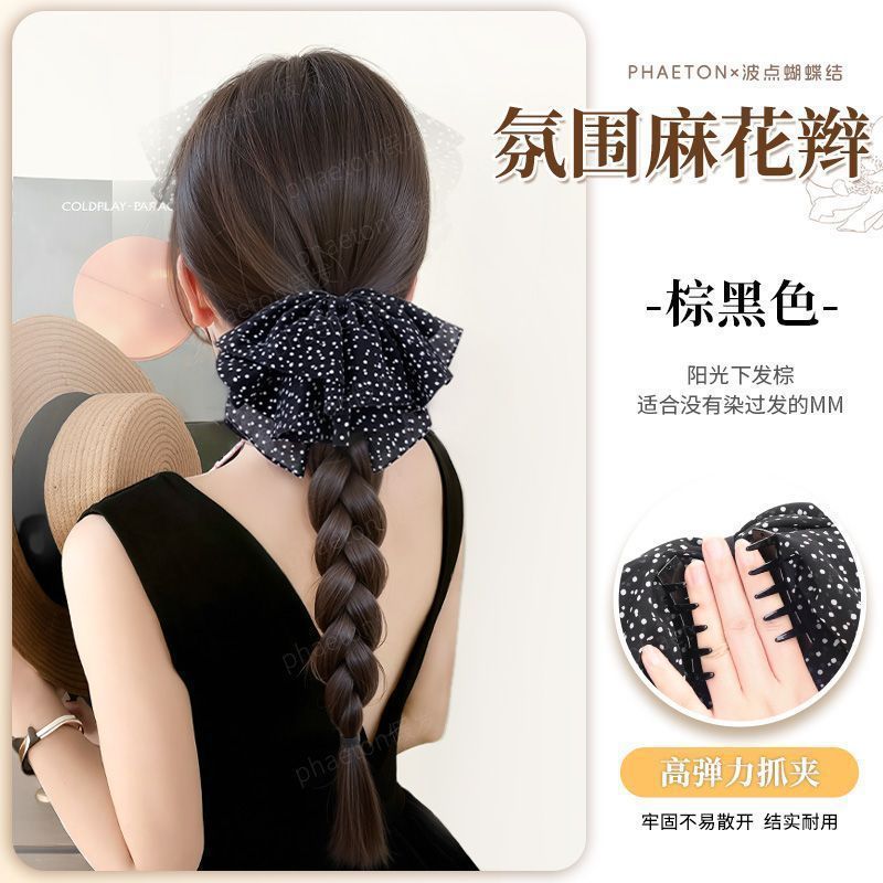 ウィッグ三つ編み女性椿リボンクリップ三つ編みロング三つ編みヘアアクセサリーナチュラルシミュレーションウィッグ三つ編みポニーテール
