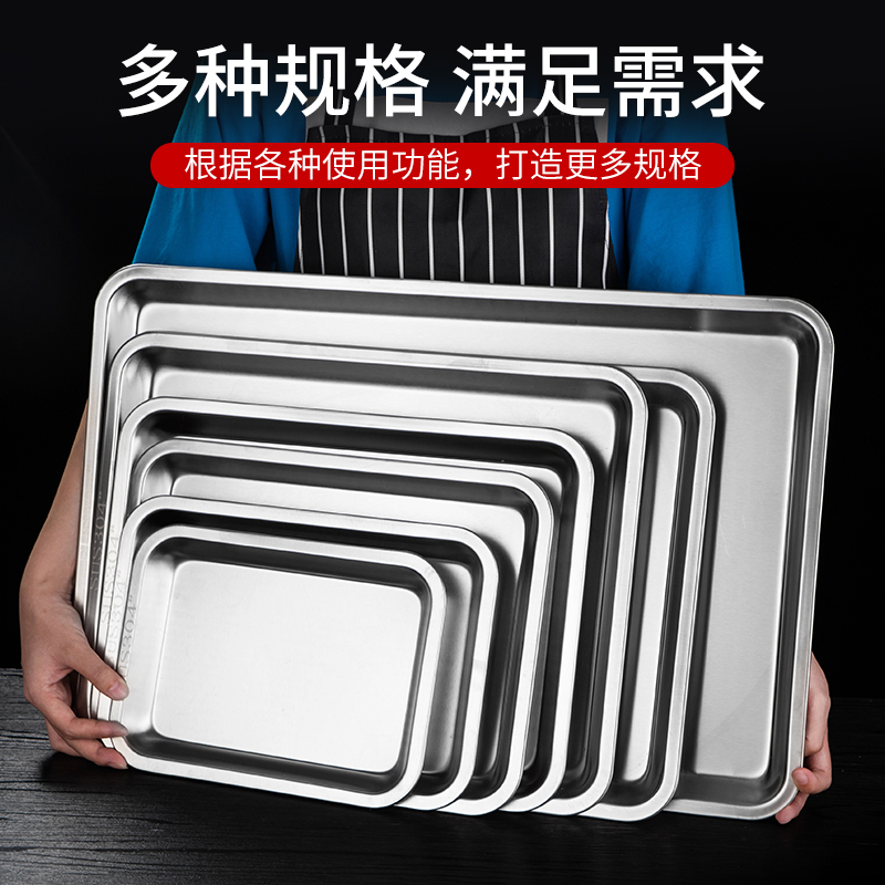 304食品級ステンレストレー長方形商用厚手蒸飯鉄盤家庭用キッチン平角皿