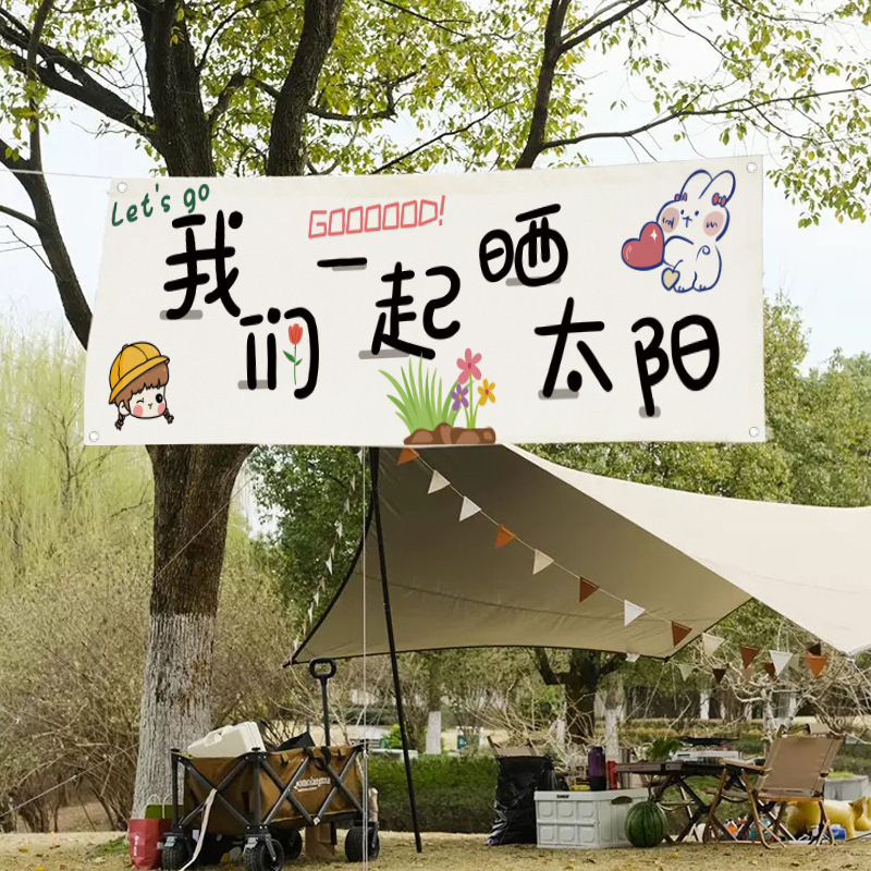 ✅ RP4T卸売屋外キャンプ場吊り下げ布キャンプチームビルディング装飾雰囲気旗バナー野外活動広告旗