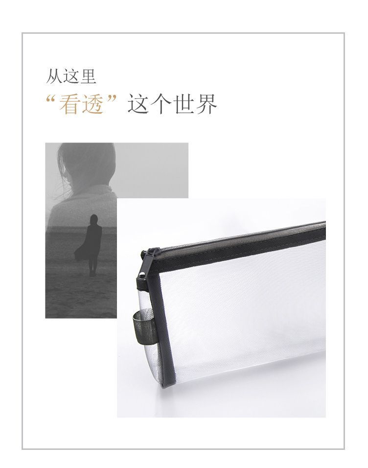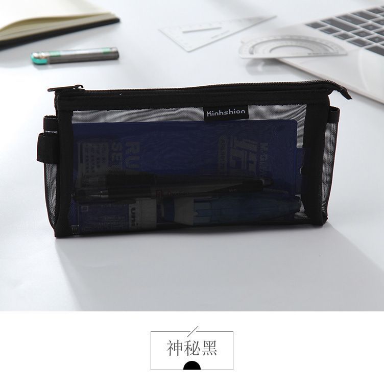 Zhiming シンプルな透明メッシュ鉛筆バッグ収納袋学生試験ポータブル鉛筆バッグ大容量文具箱