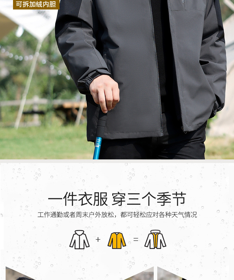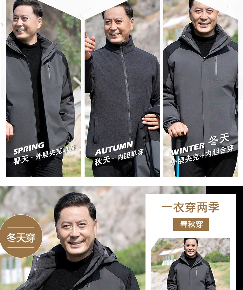 上衣春秋装外套可拆卸爷爷三合一爸爸中年加绒冲锋衣男中老年人款