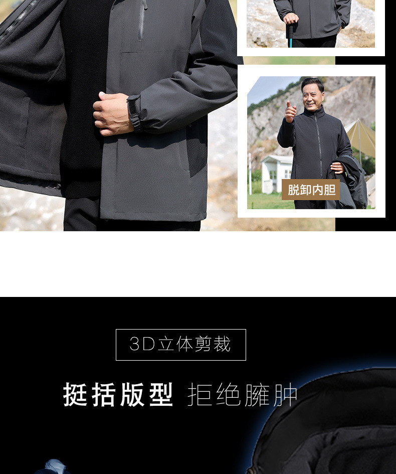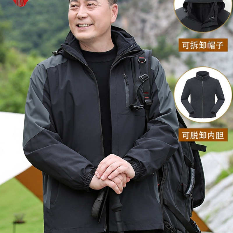 男士冲锋衣秋冬季外套加厚内胆中年夹克三合一男装爸爸登山服