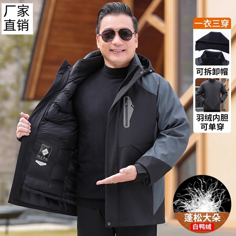 爸爸秋冬季外套装中年男士三合一夹克套装中老年人上衣冲锋衣男款