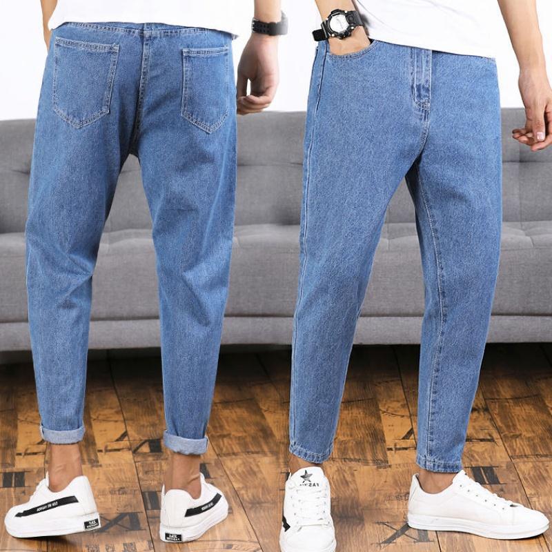 春夏ルーズ9点パンツメンズジーンズティーンエイジャー学生ハーレムパンツライトブルーラディッシュパンツトレンドパンツ日本製