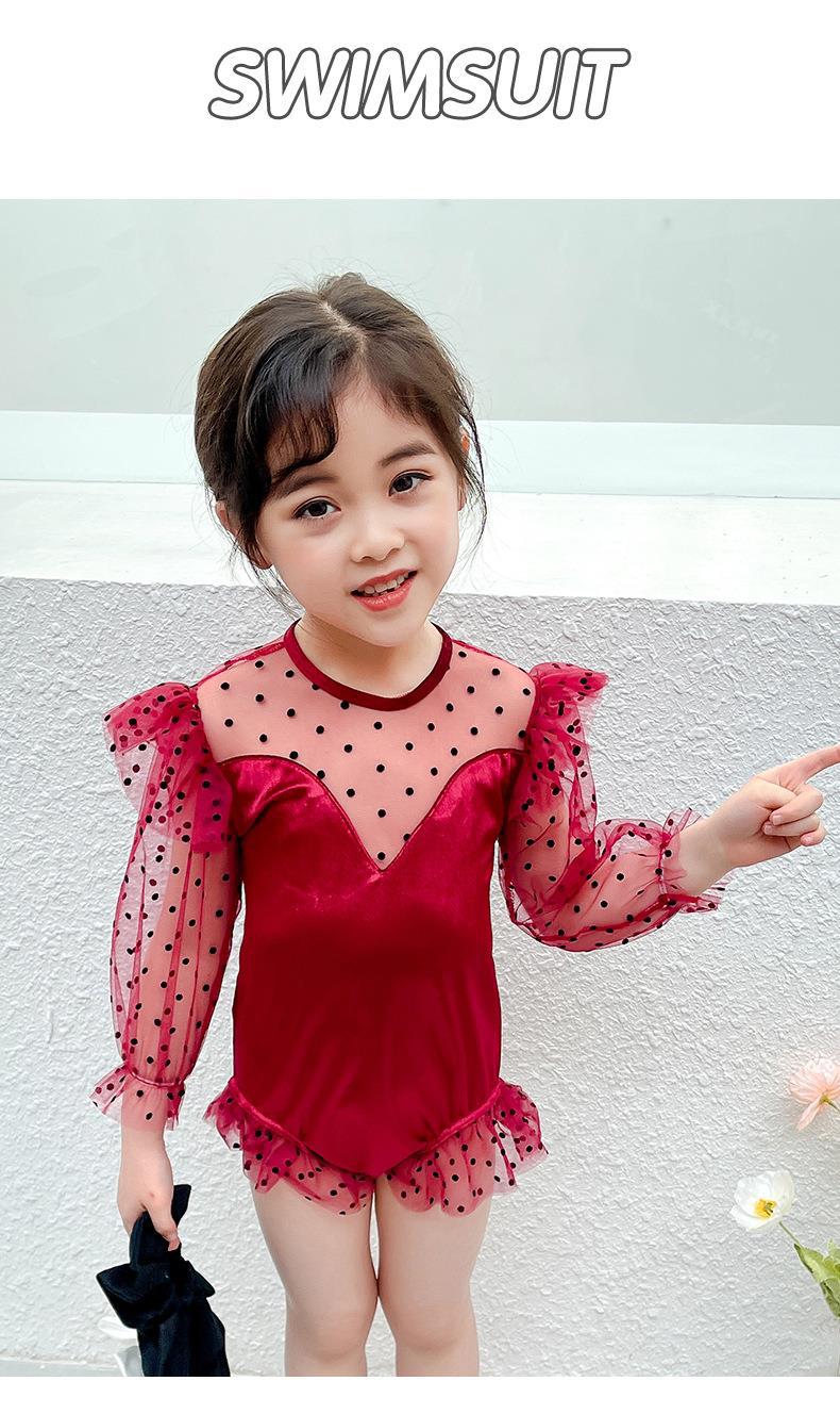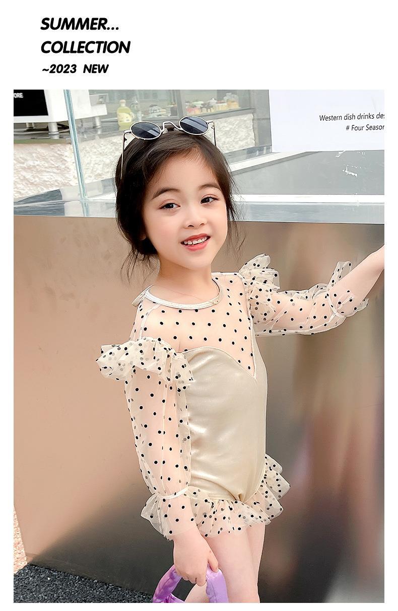 おしゃれな子供用女の子温泉水着ワンピーススーツ、子供用日焼け止め水着、かわいい水着