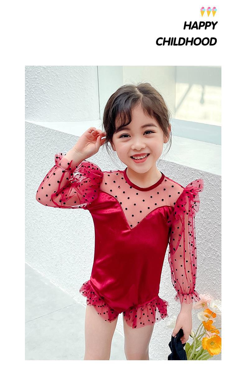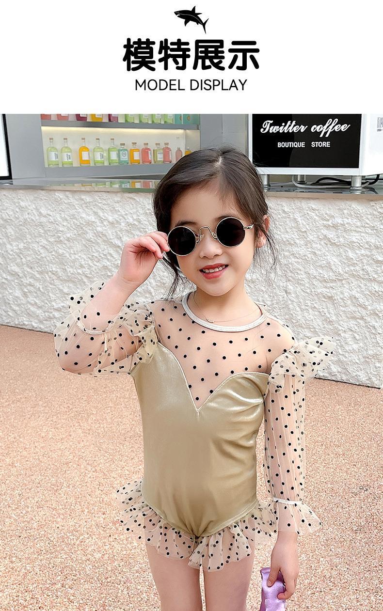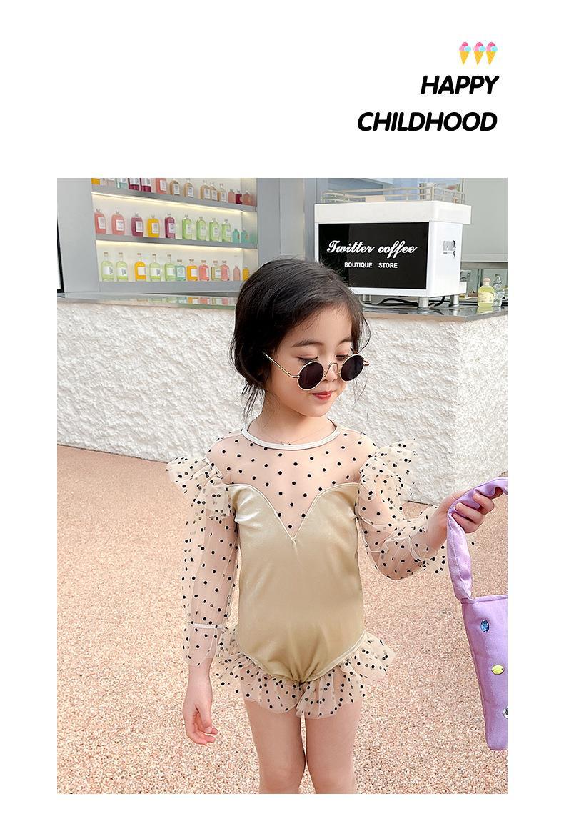 高級水着フリル温泉特別価格ワンピース子供用水着女の子服長袖プリンセススカートミディアムコーヒー色