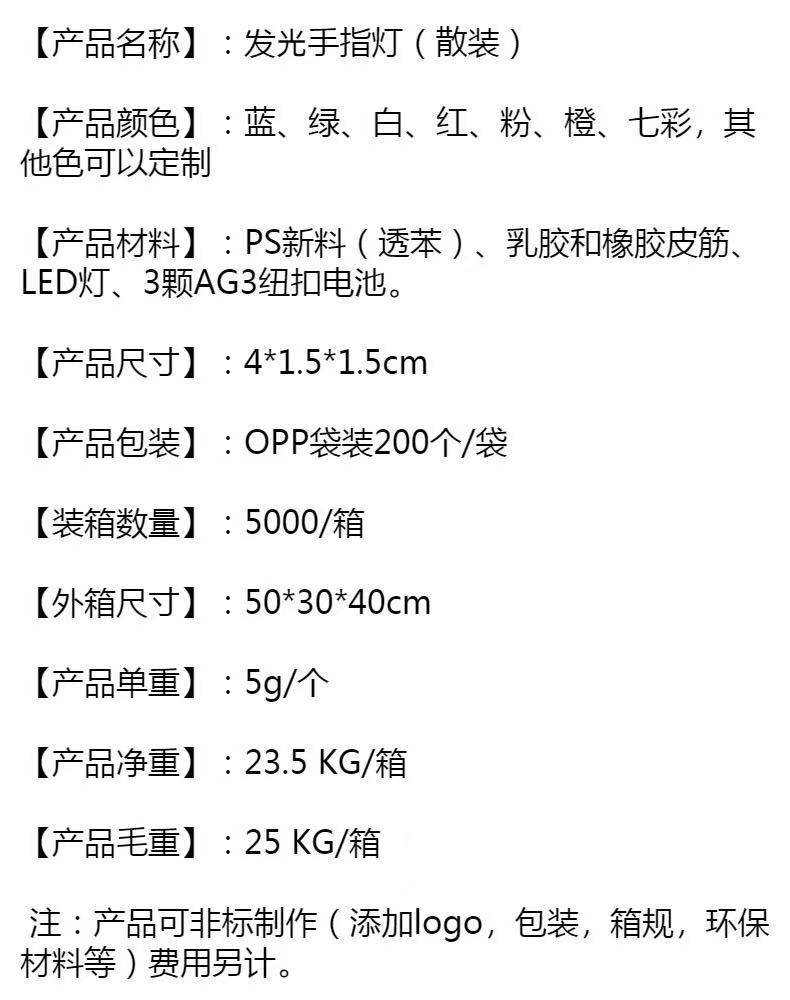 LED 発光フィンガーライトおもちゃナイトクラブコンサート応援小道具メーカー卸売カラフルなフラッシュリングライト