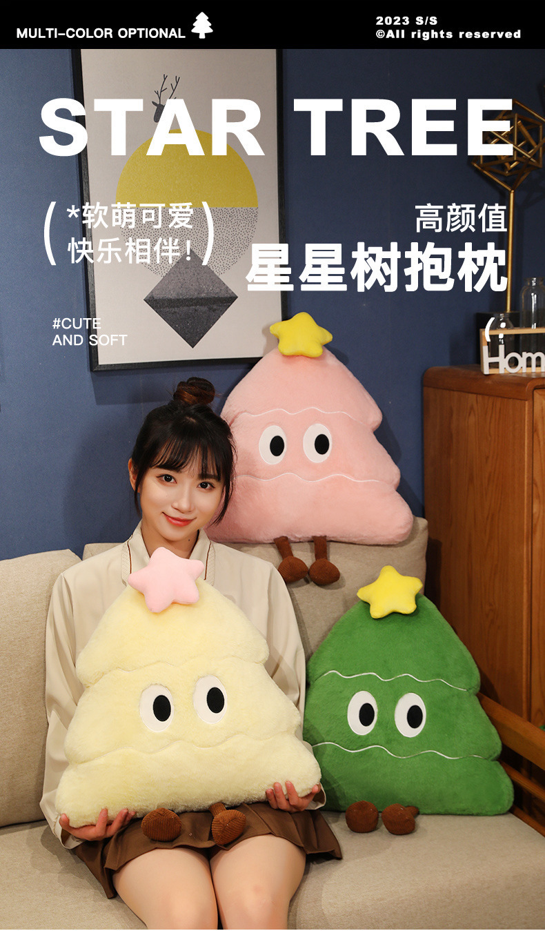 创意可爱星星大圆润眼睛圣诞树抱枕毛绒沙发靠垫摆件圣诞礼物玩偶