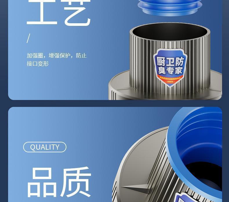 万康厨房下水管三头通洗衣机下水三通排水管防臭配件接头尾通神器