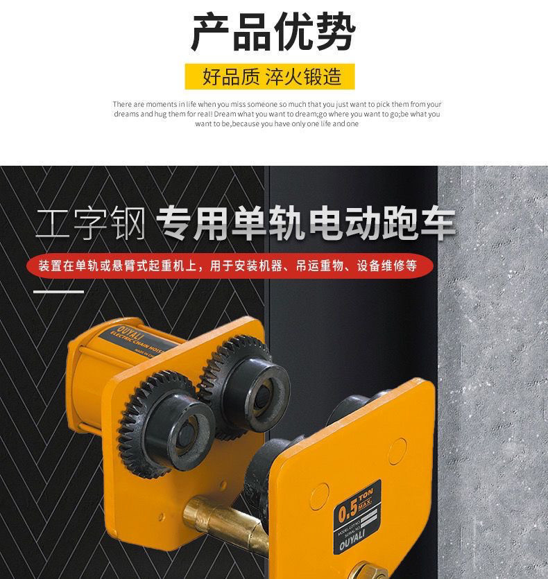 ハンドプッシュスポーツカー幅調整可能0.5t1t2T3T5トンI字型スライドホイストホイスト単軌道電動