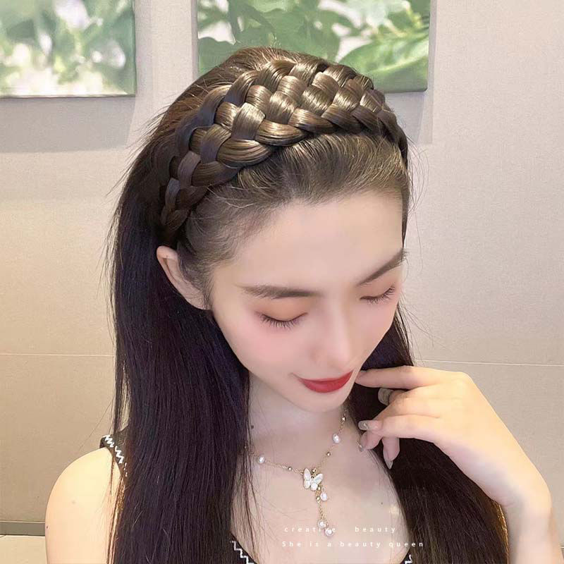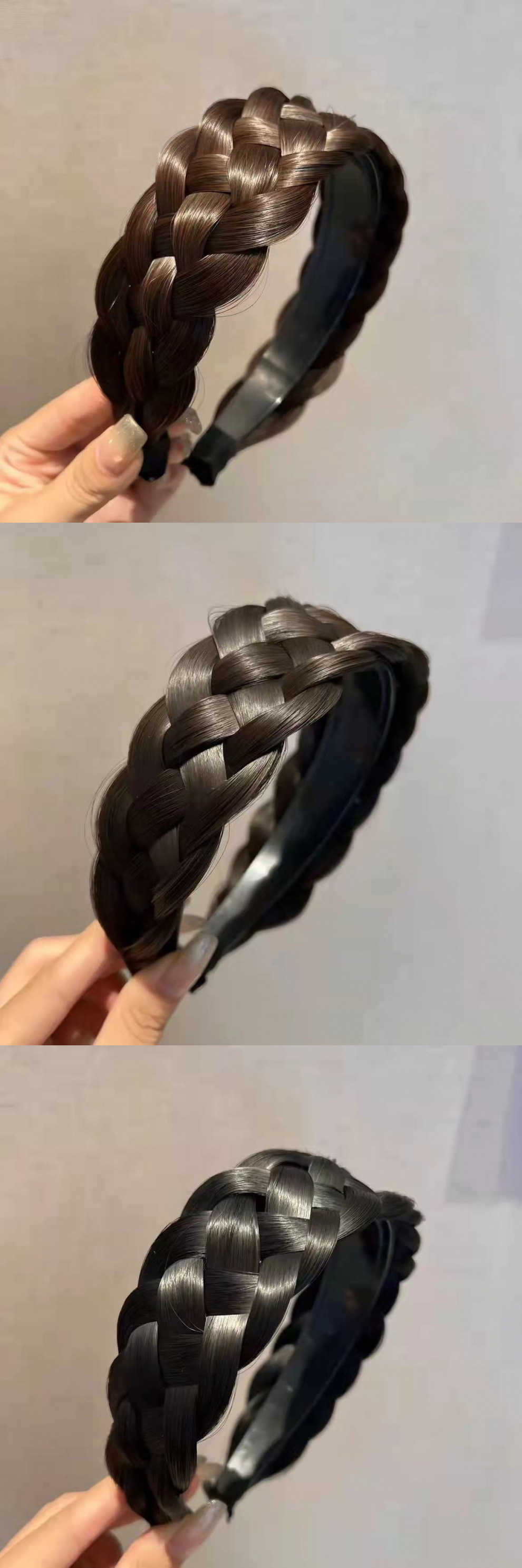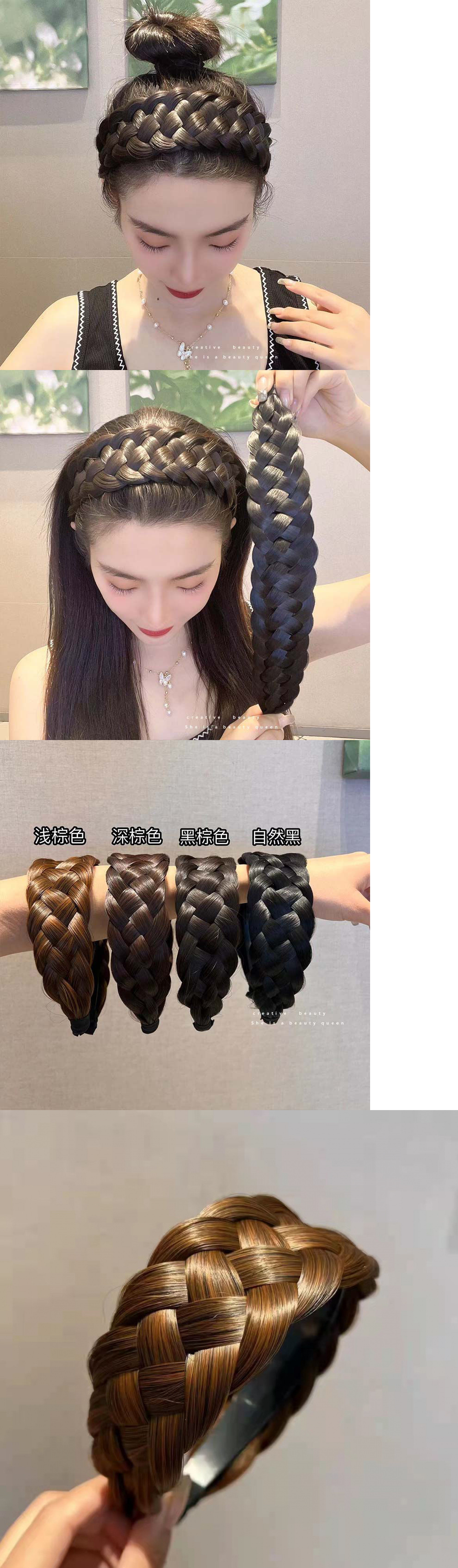 ウィッグヘッドバンド 5 本編み厚みのあるつば広手作りフィッシュボーン編み込みツイストヘッドバンド女性の夏の高頭蓋圧力ヘアバンド